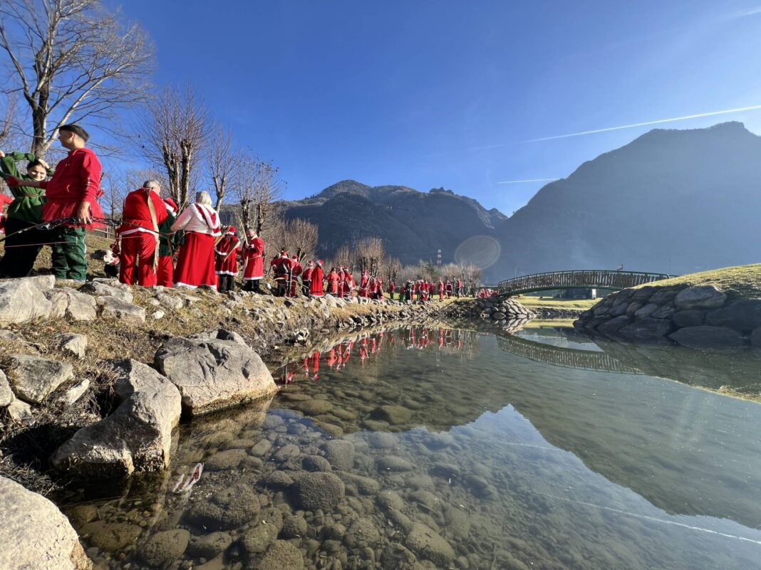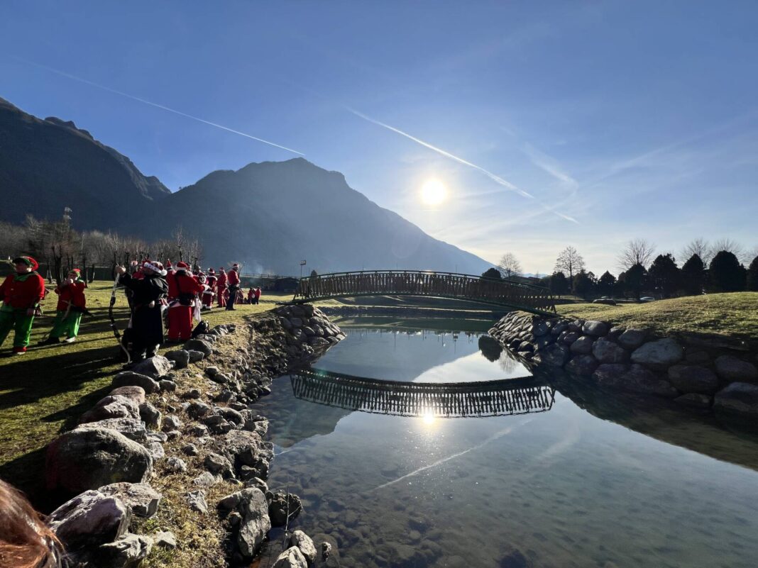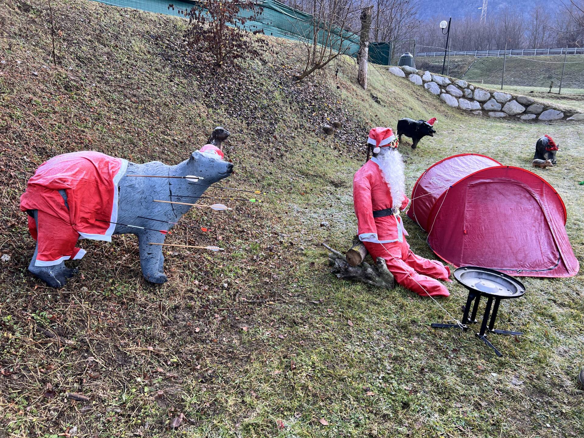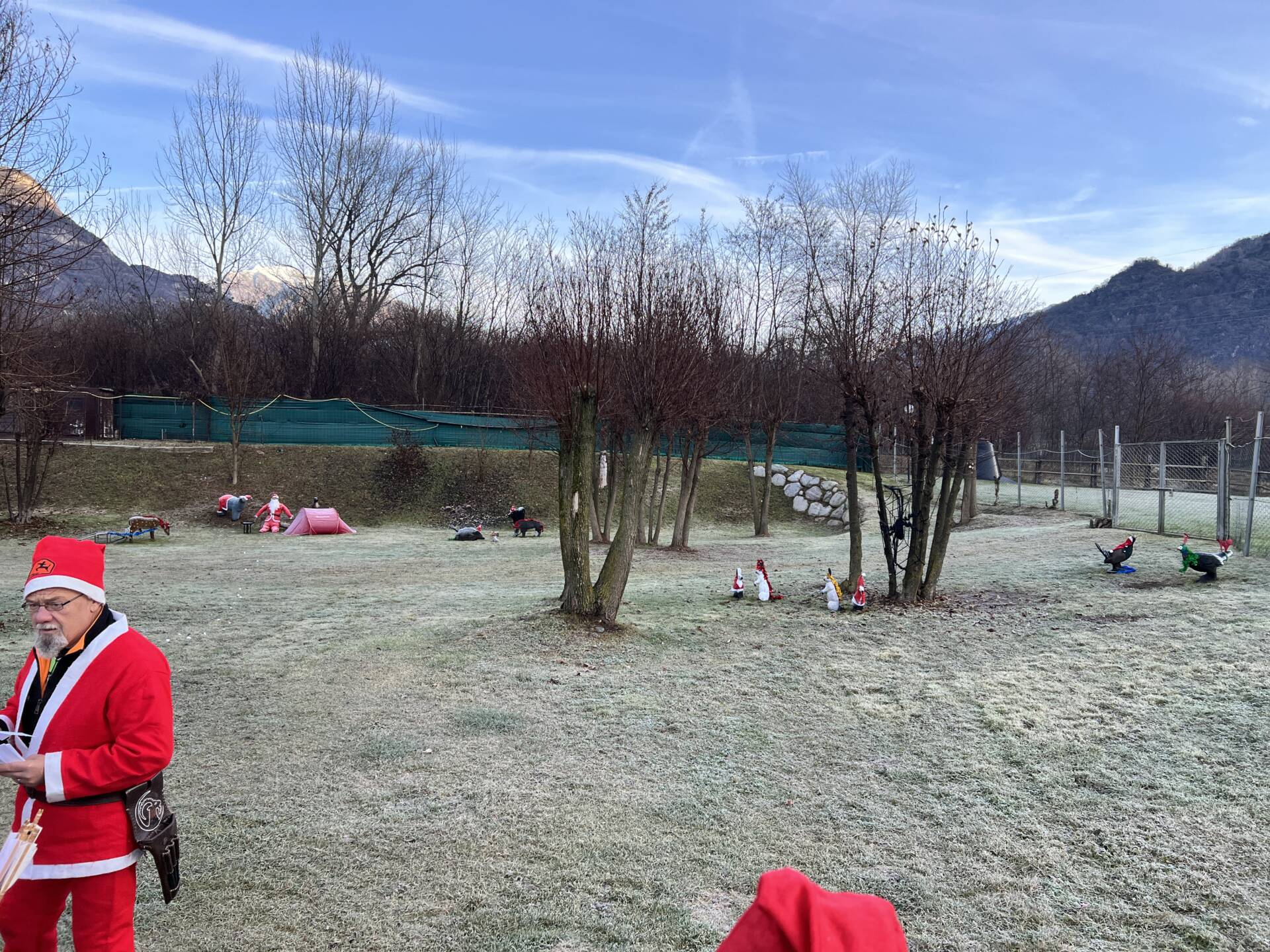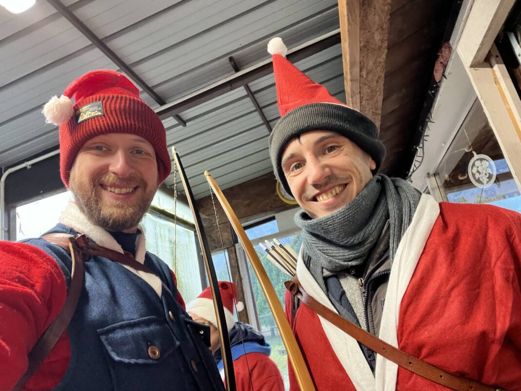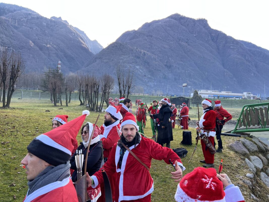 Una bella giornata vestiti da Babbo Natale a tirar frecce attorno al laghetto.
