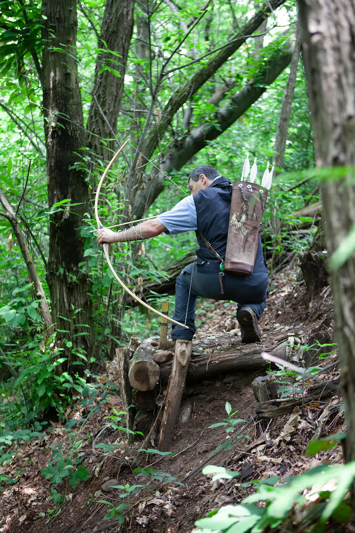 + Consegna 2 archi e tesi “Come costruire un semi-longbow americano” (valida come licenza di costruttore di archi con il metodo della scuola La Voie Mediane, derivante da John Schulz allievo prediletto di Howard Hill)