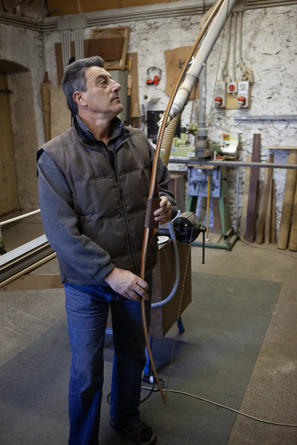 ad Oggi ha costruito innumerevoli archi sempre mantenendo i canoni della costruzione metodo La Voie Mediane. Arco semi-longbow americano (definizione imposta da Howard Hill).