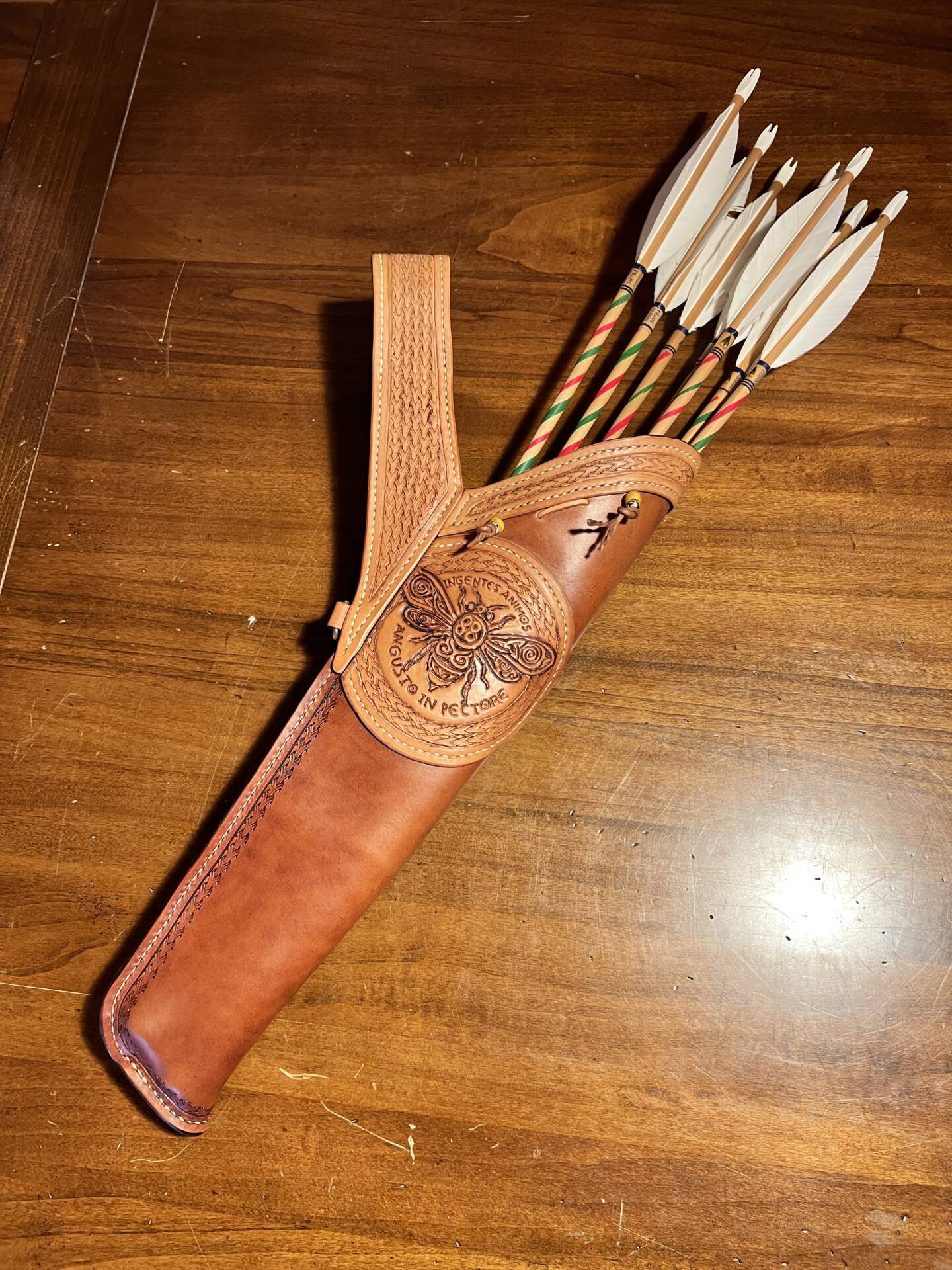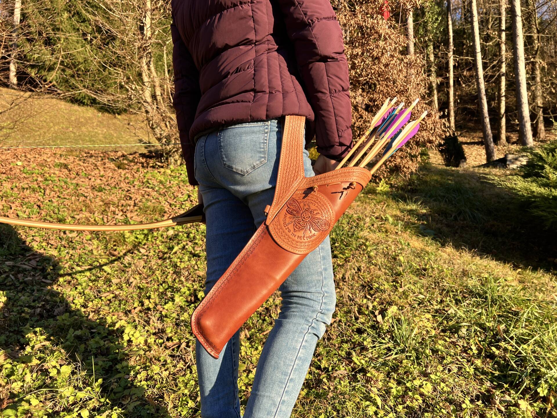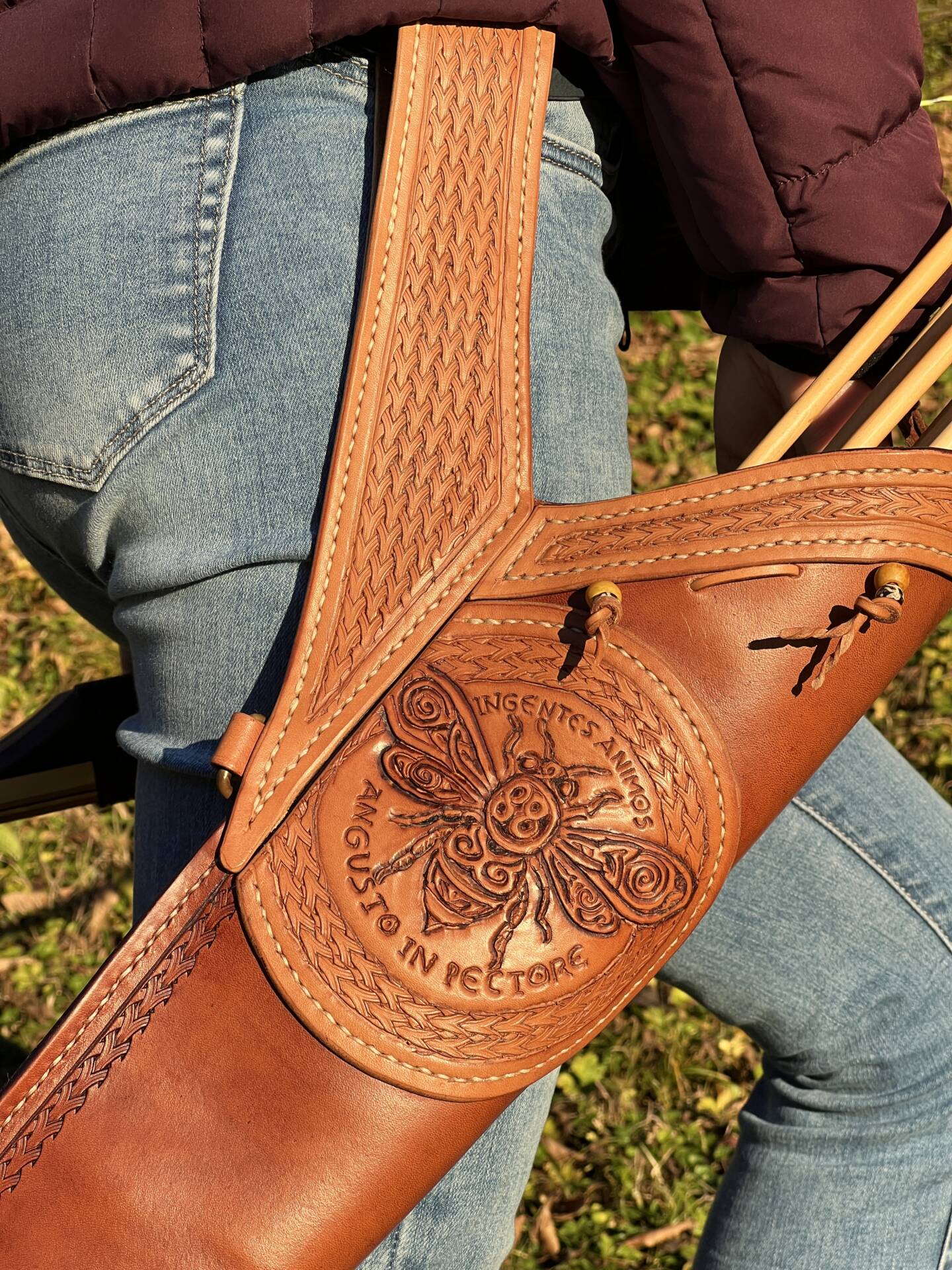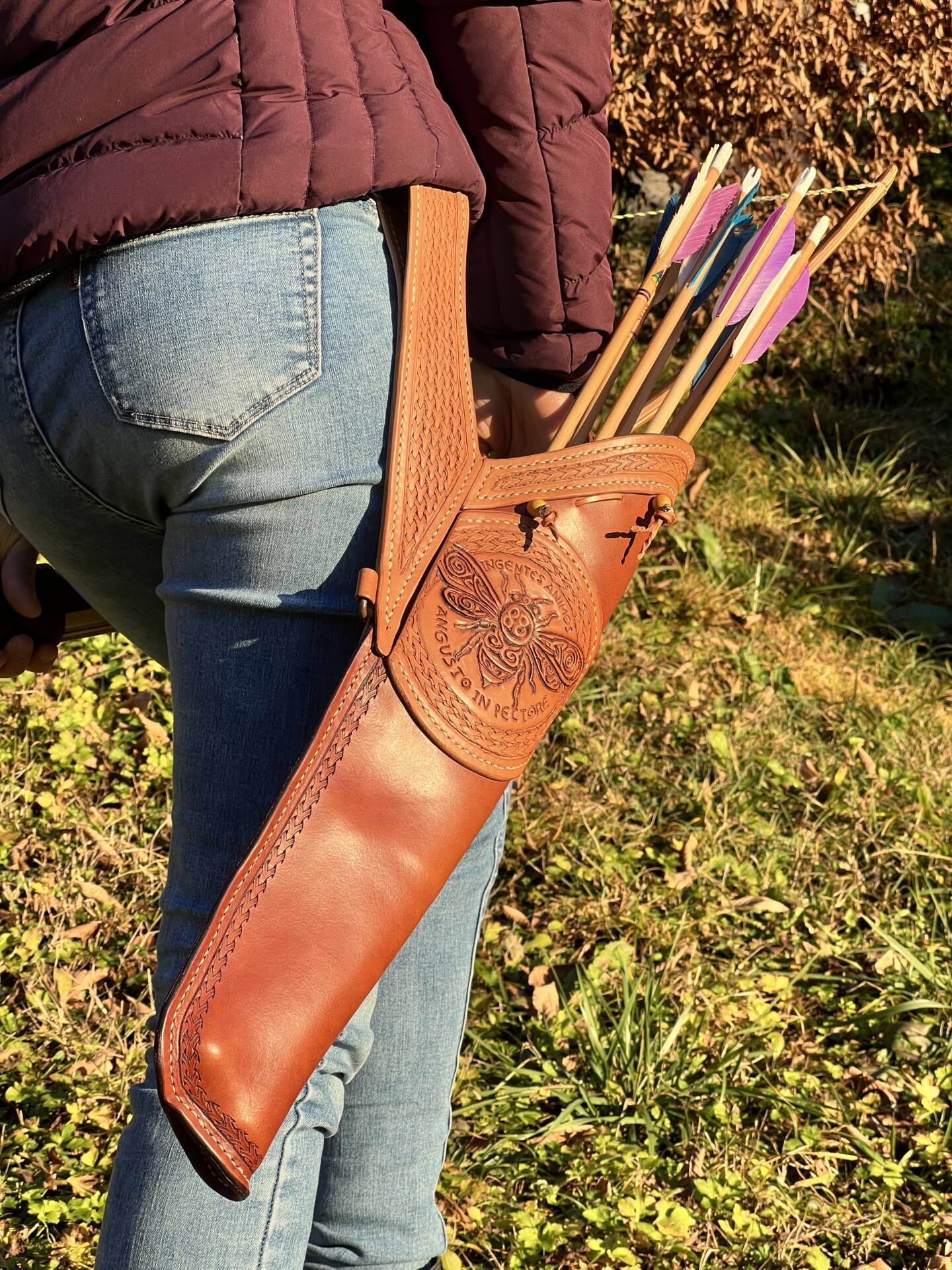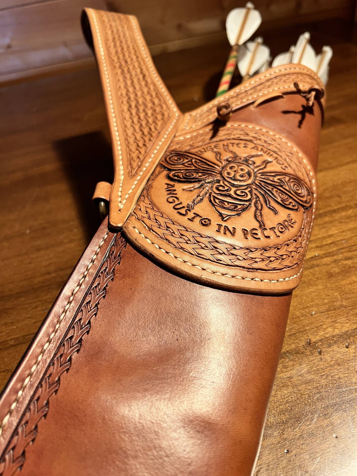 Faretra da fianco in cuoio, concia al vegetale.