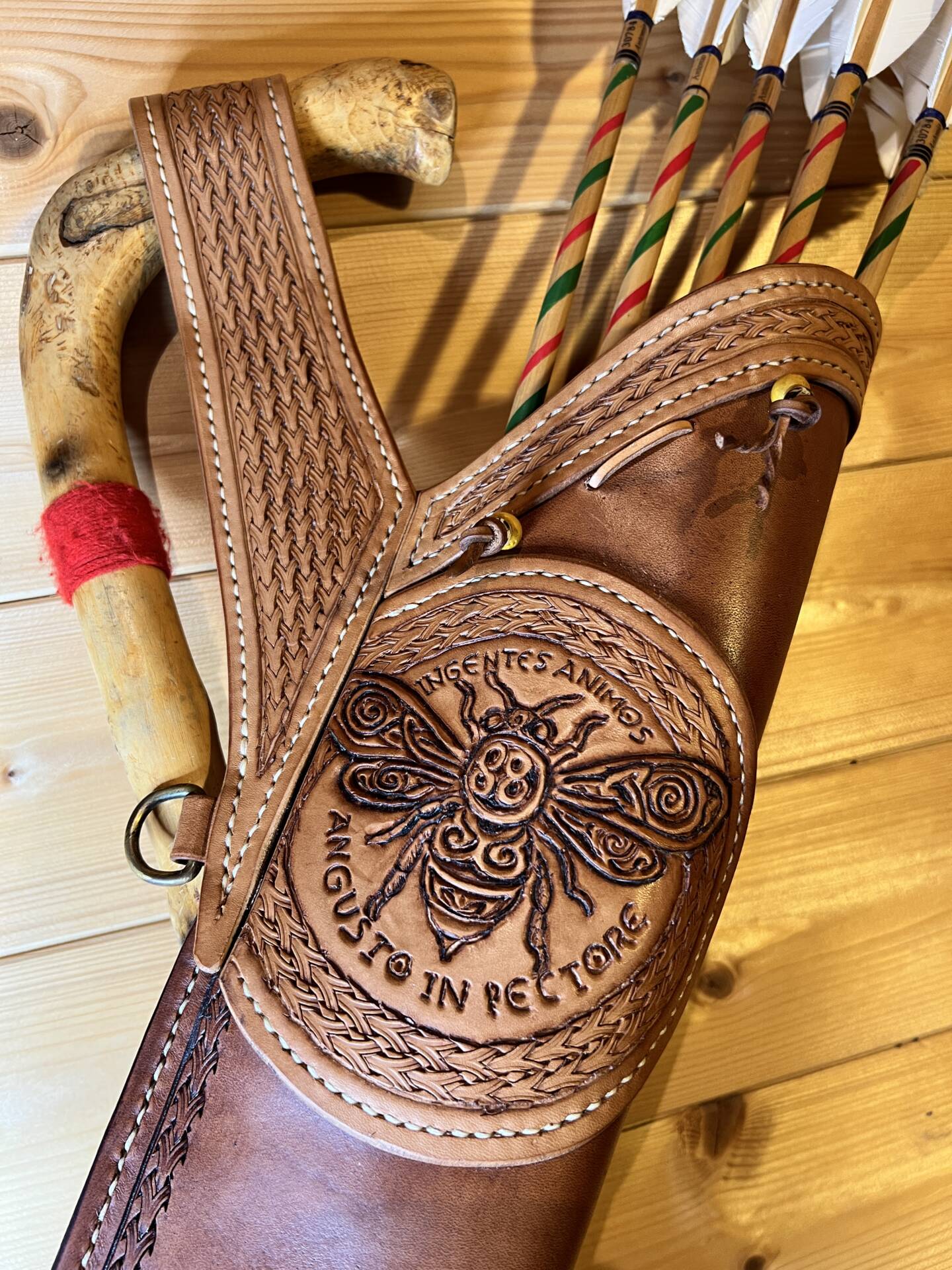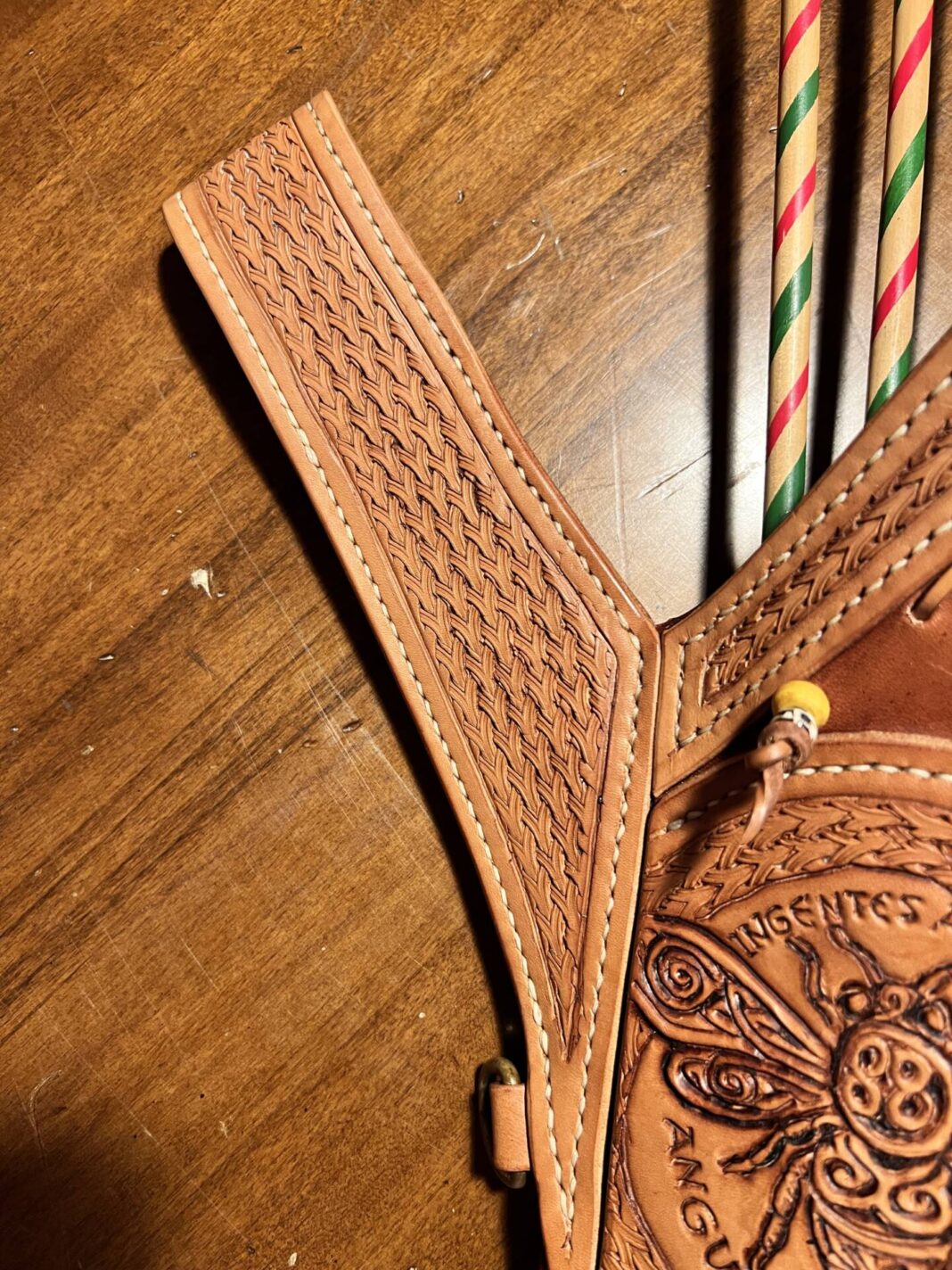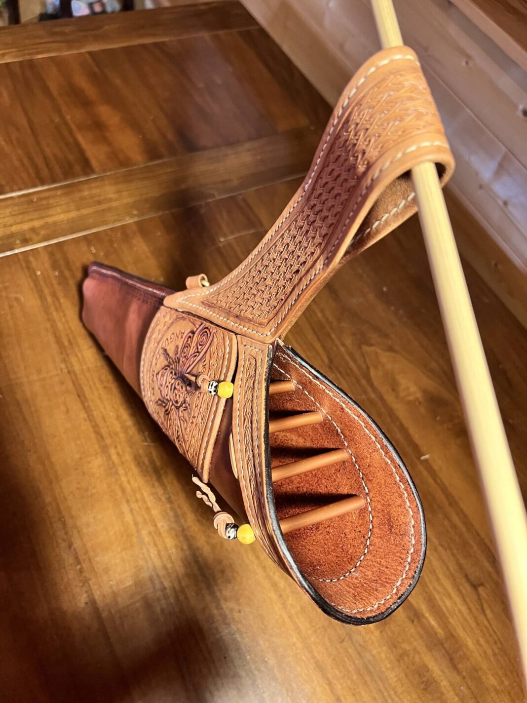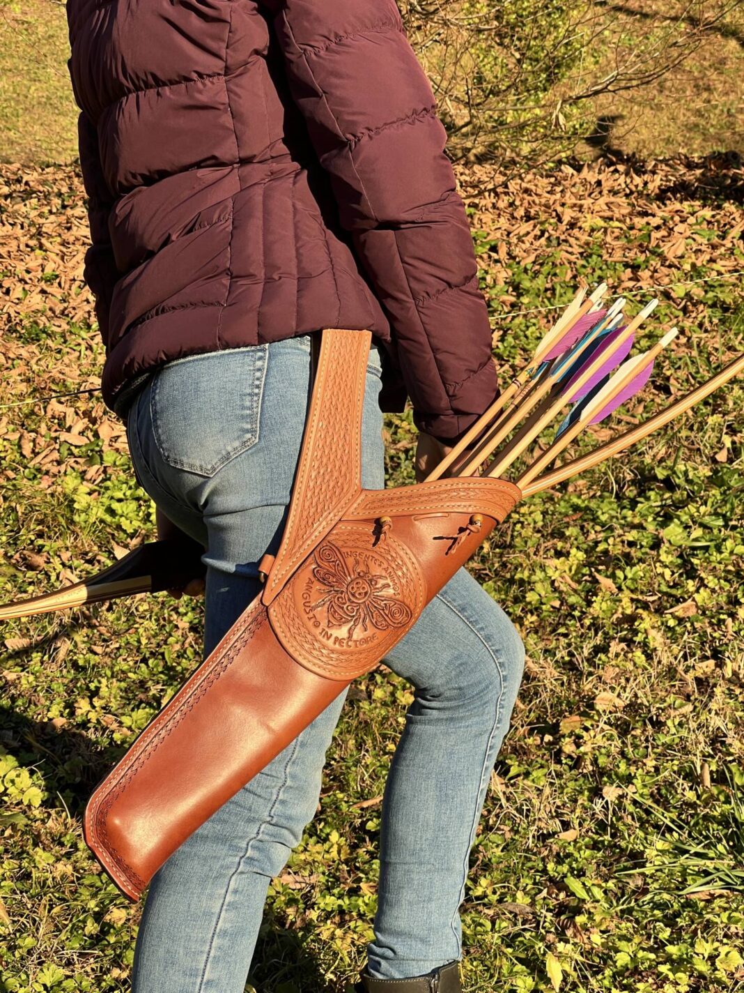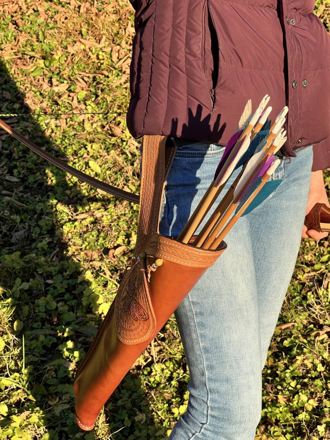 Faretra da fianco in cuoio, concia al vegetale.
