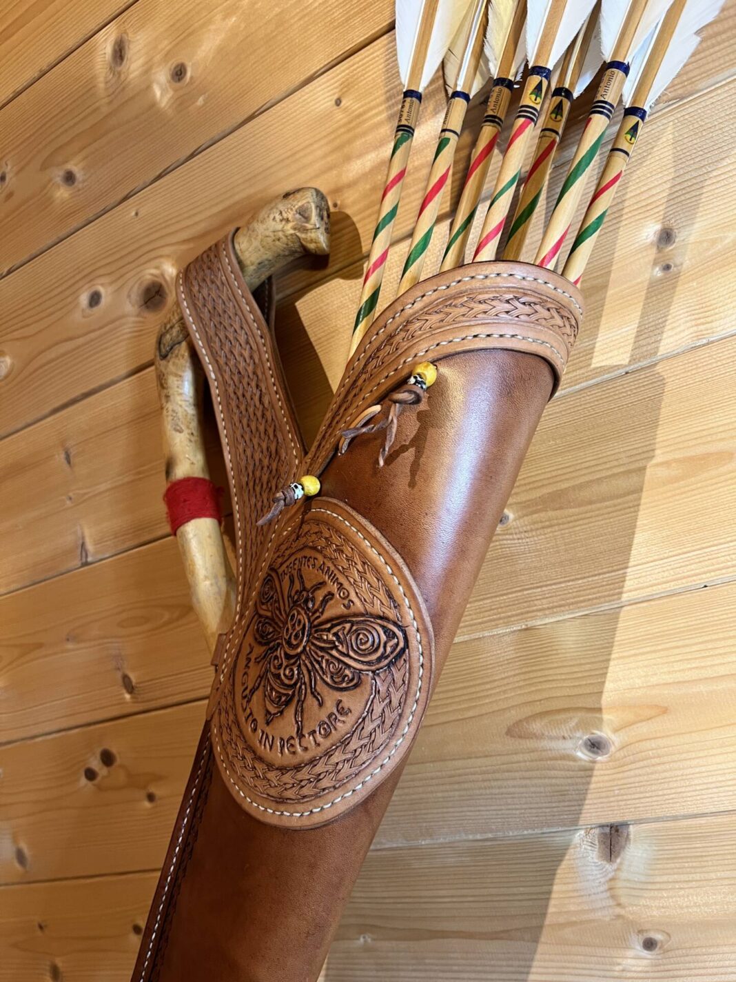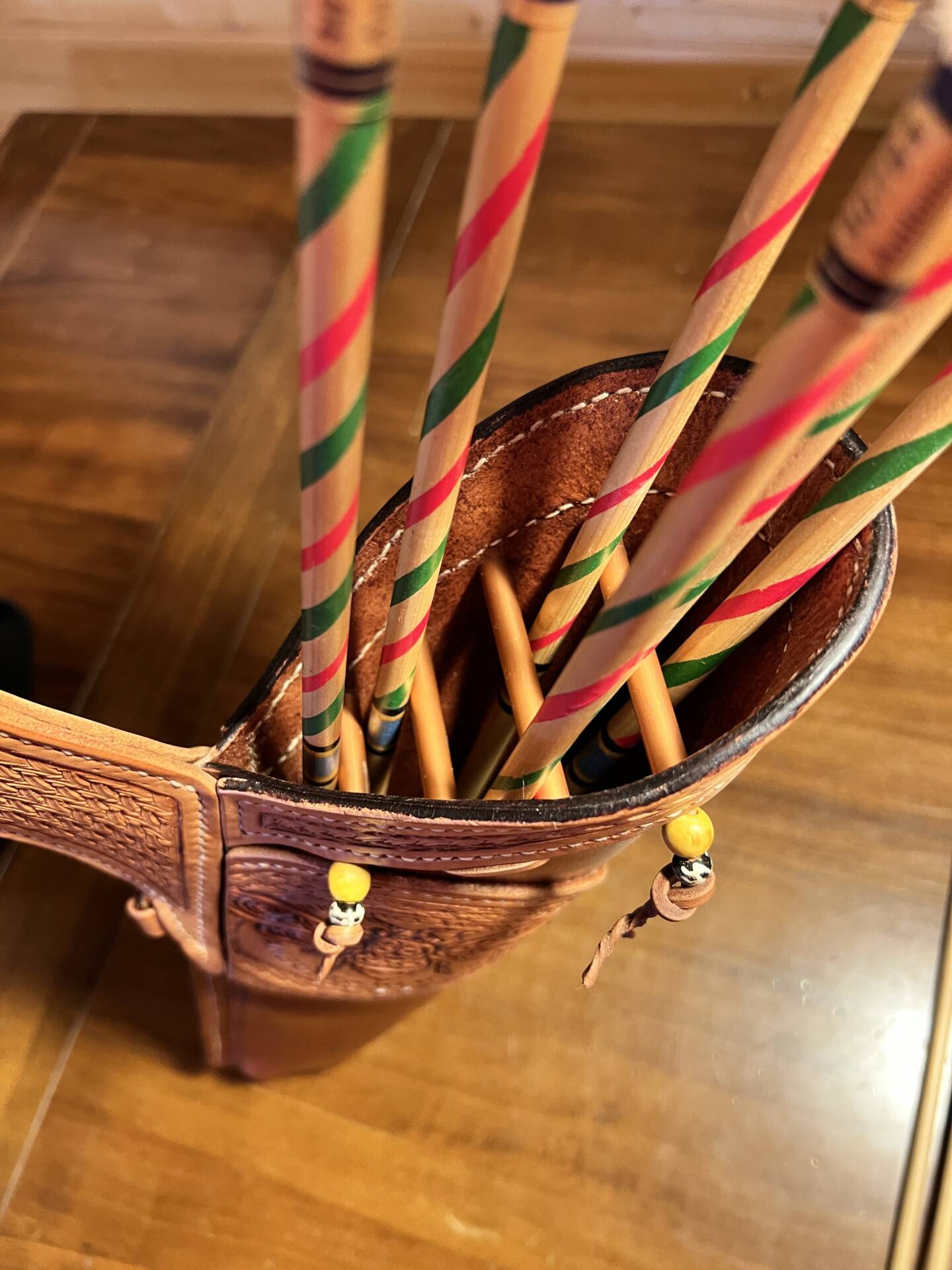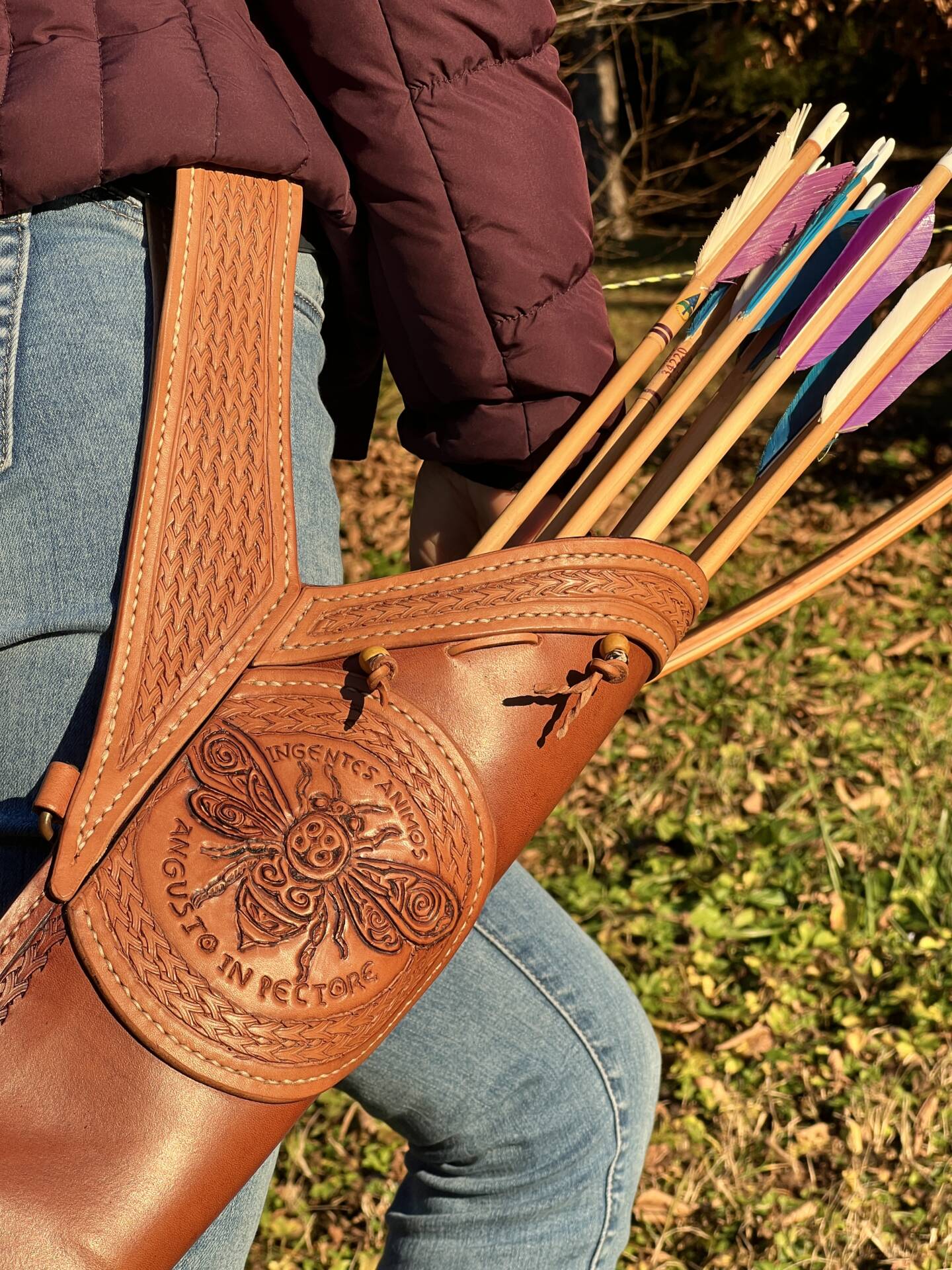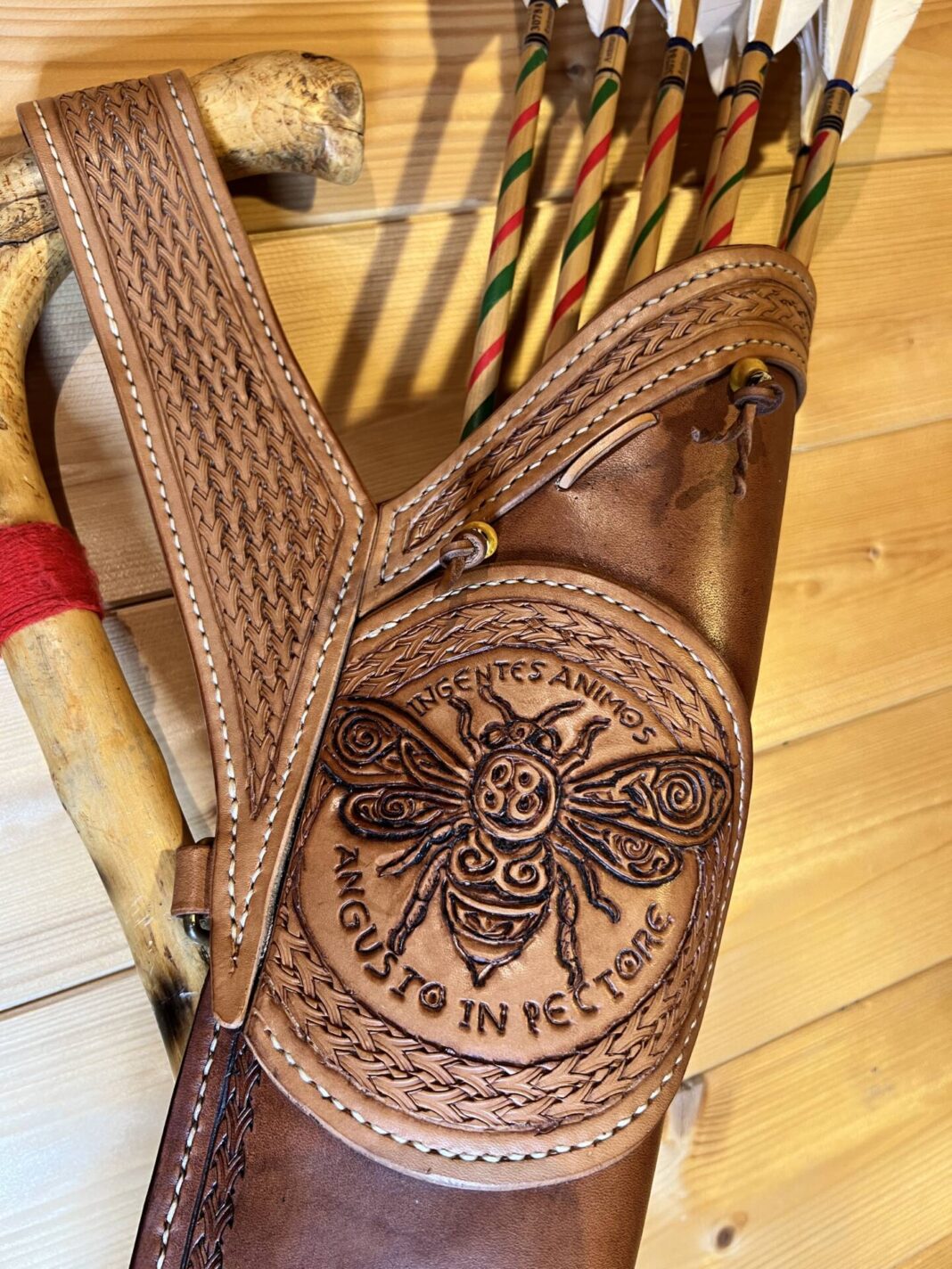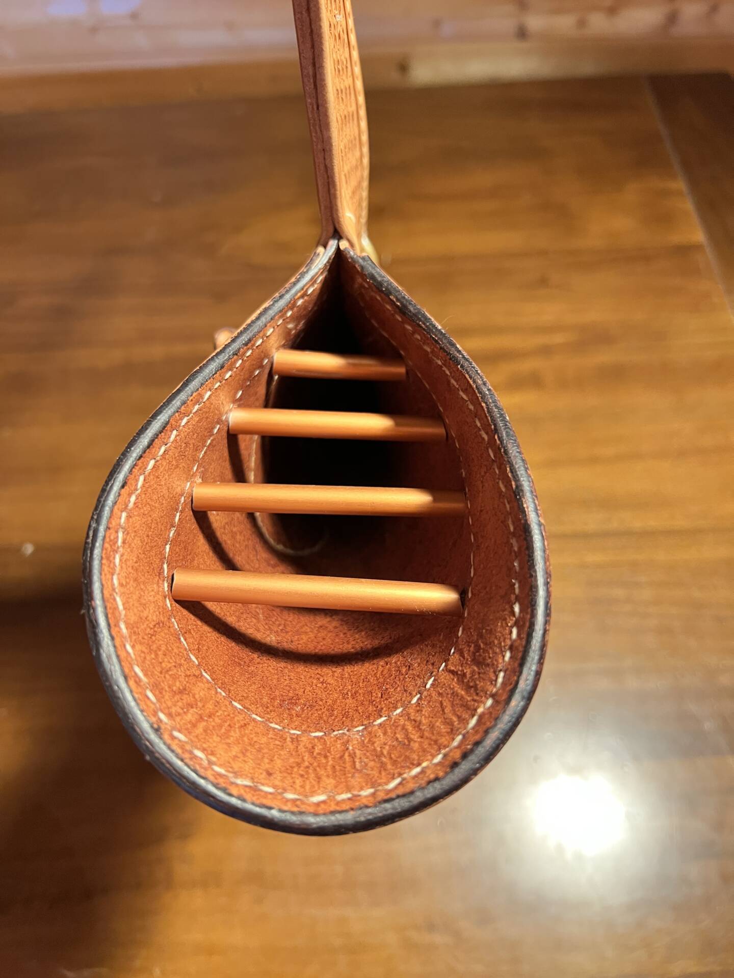 Faretra da fianco in cuoio, concia al vegetale.