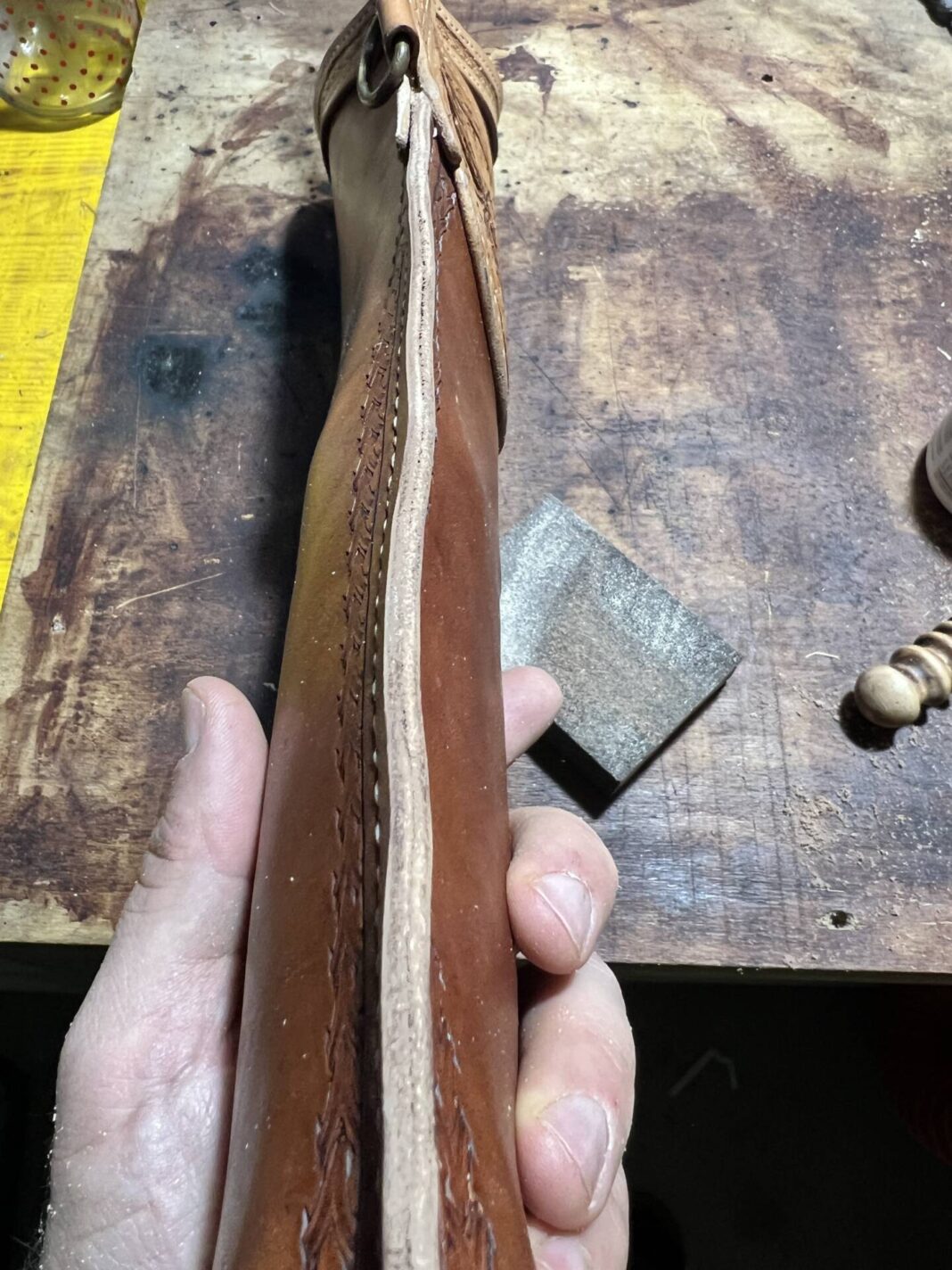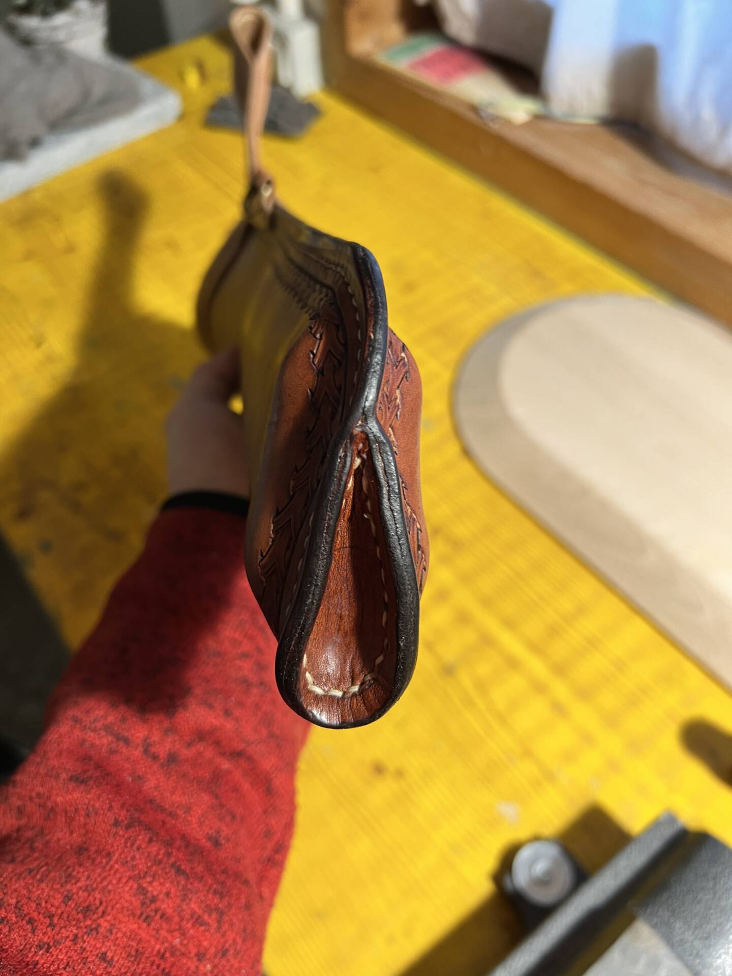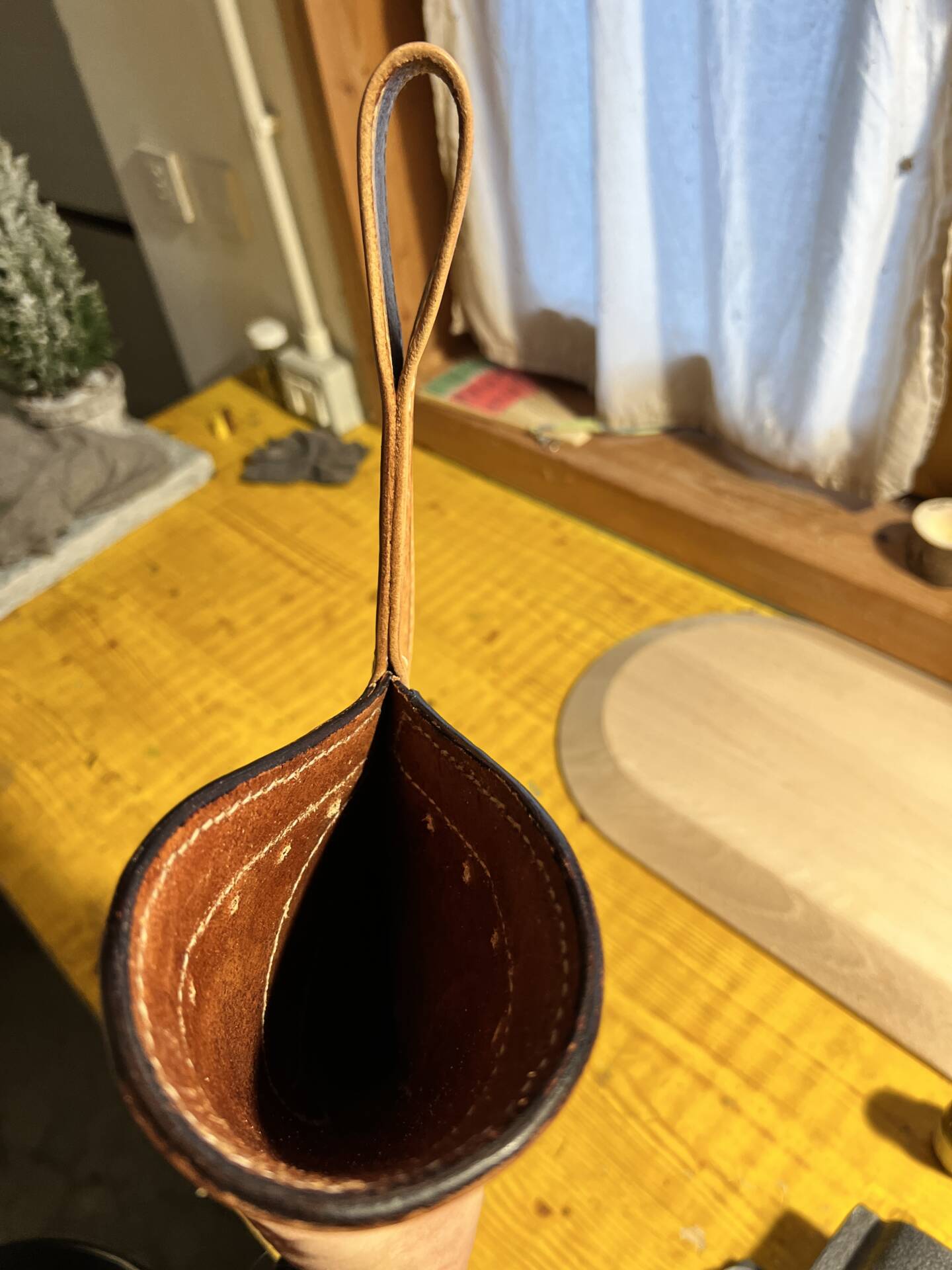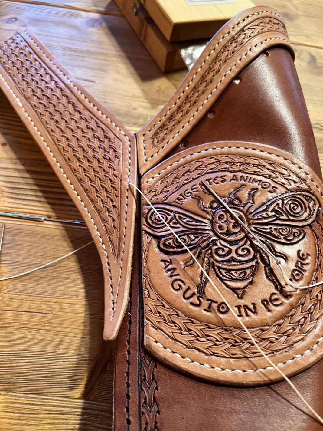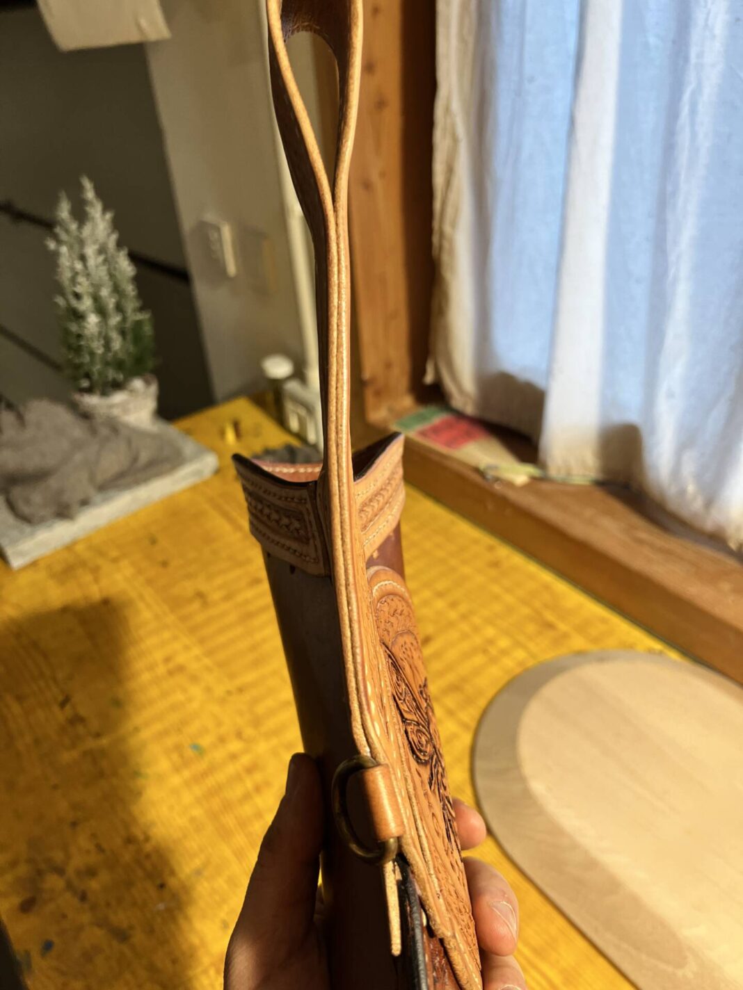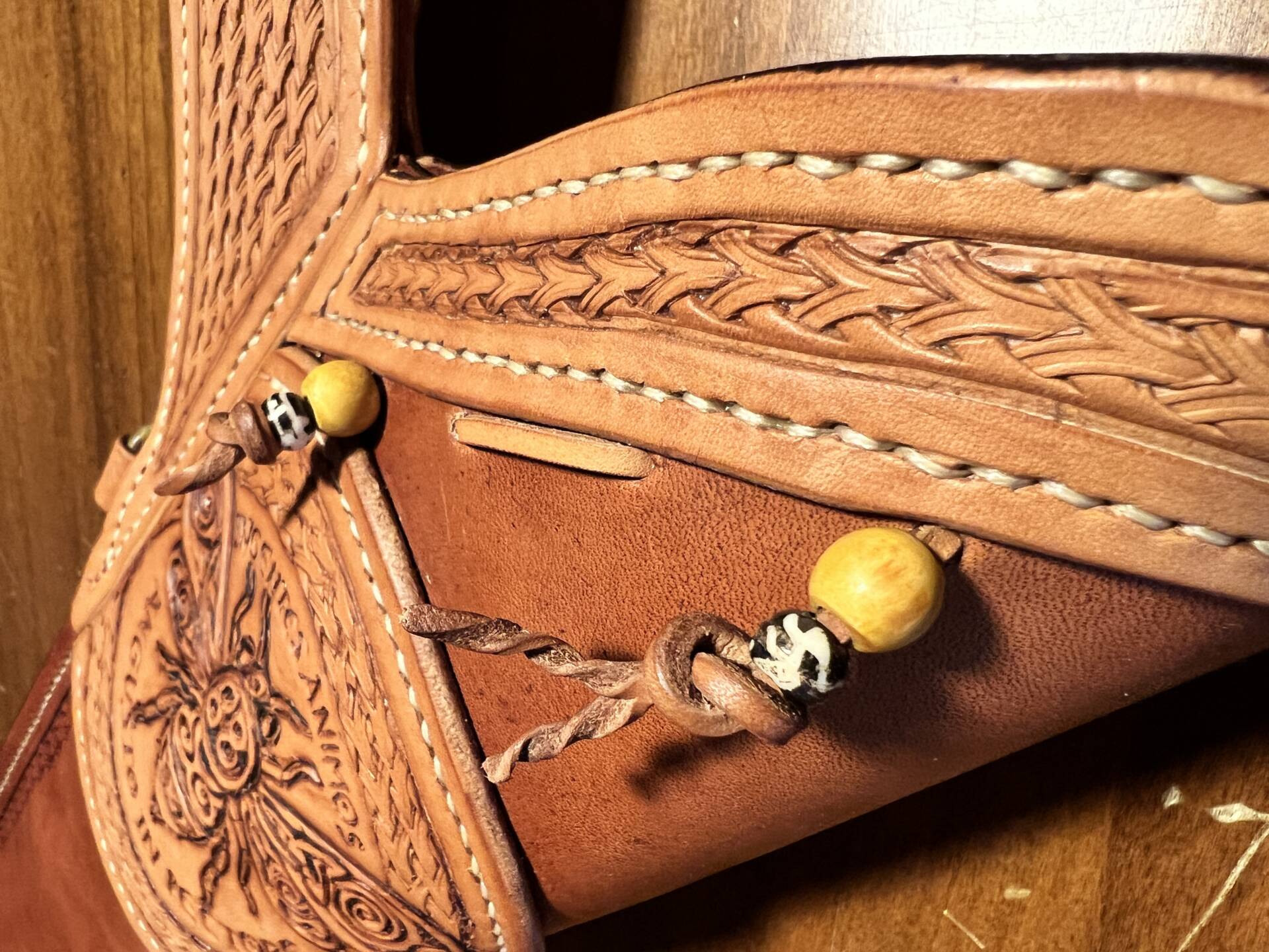 Faretra da fianco in cuoio, concia al vegetale.