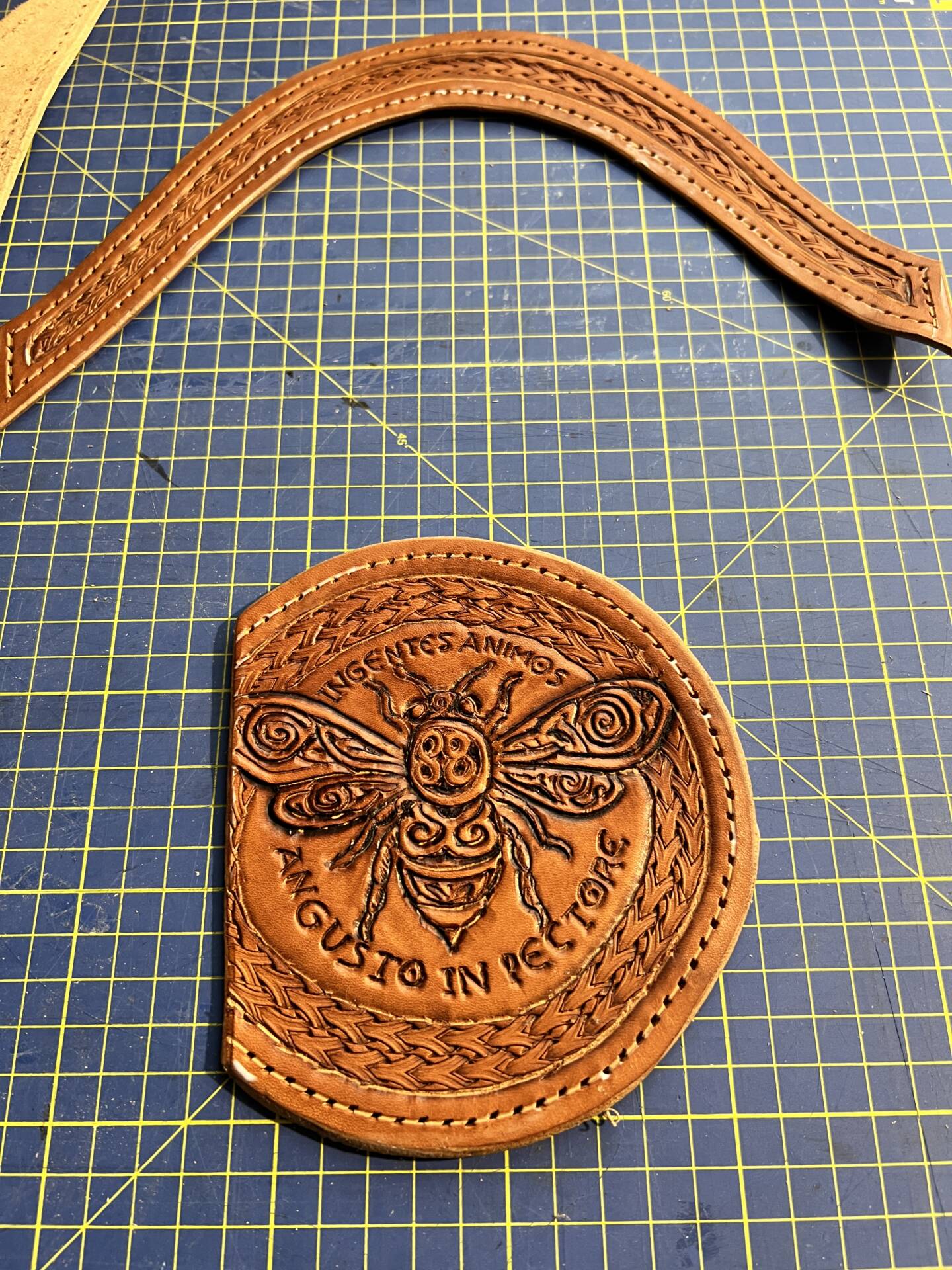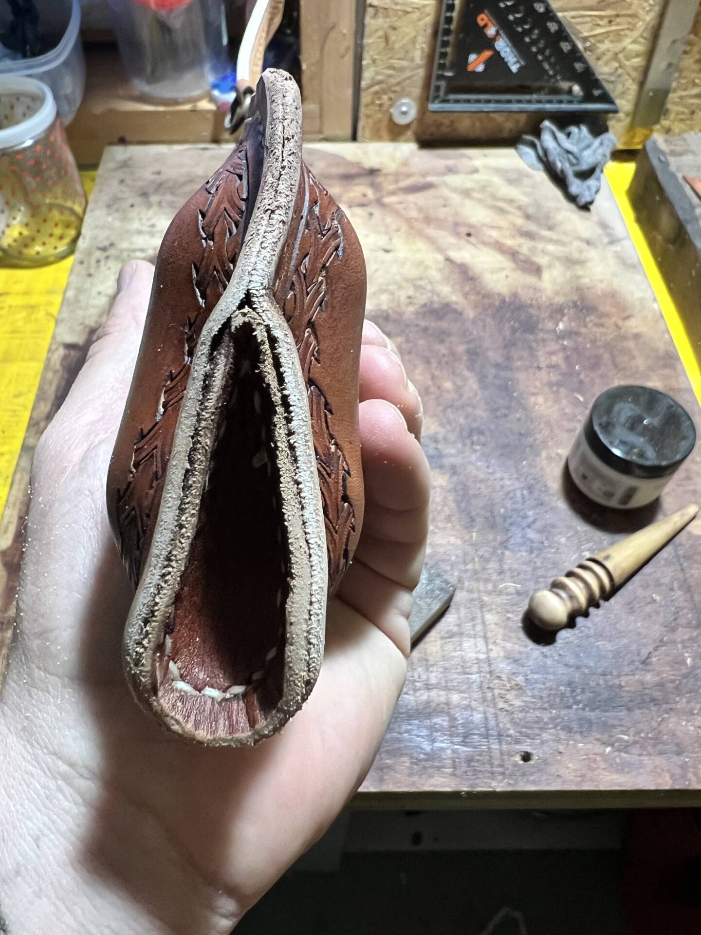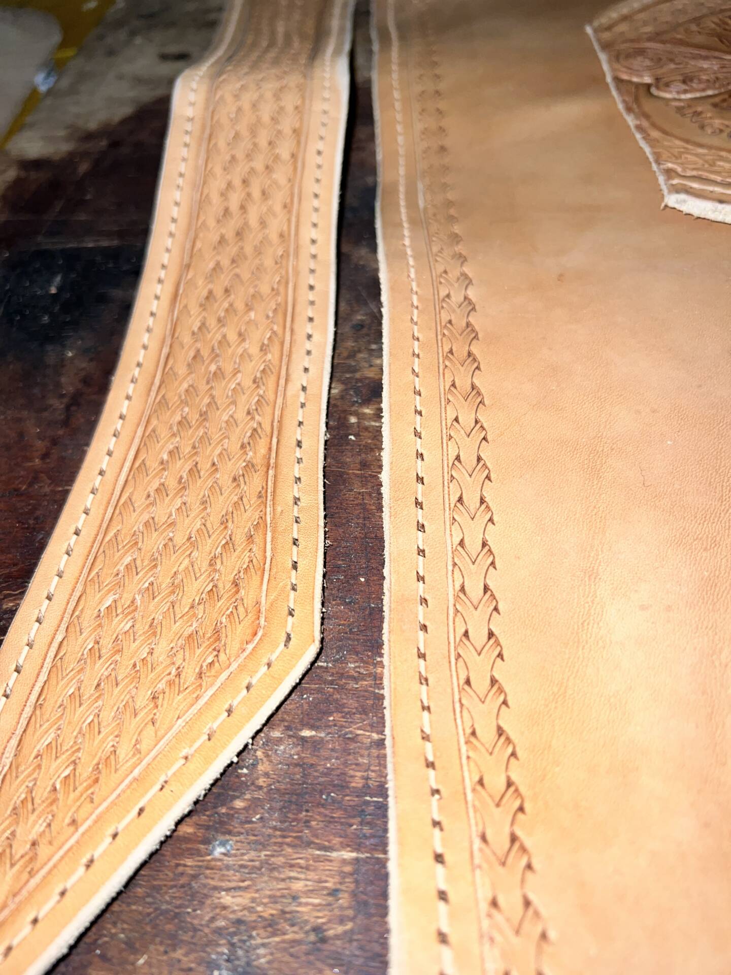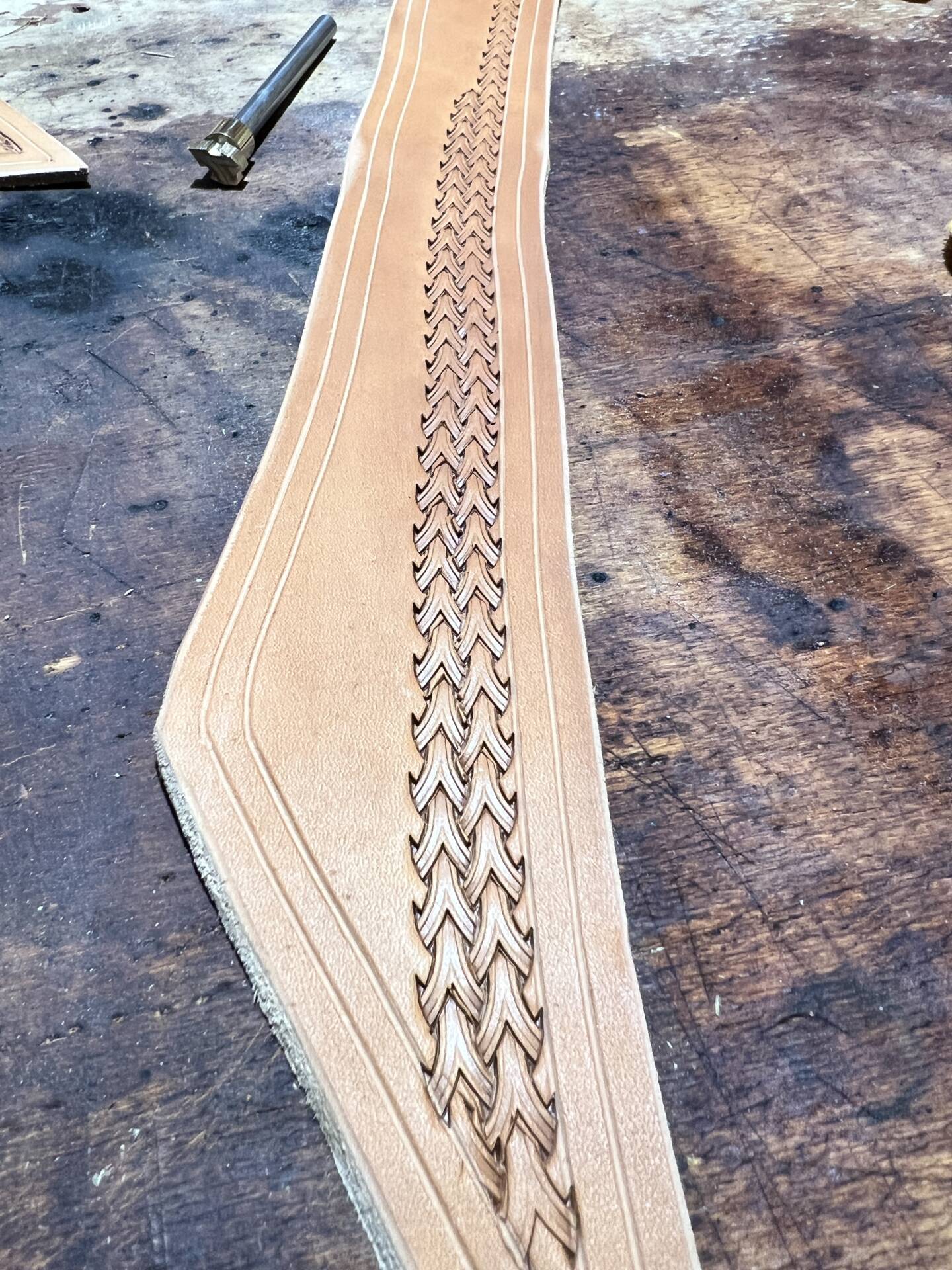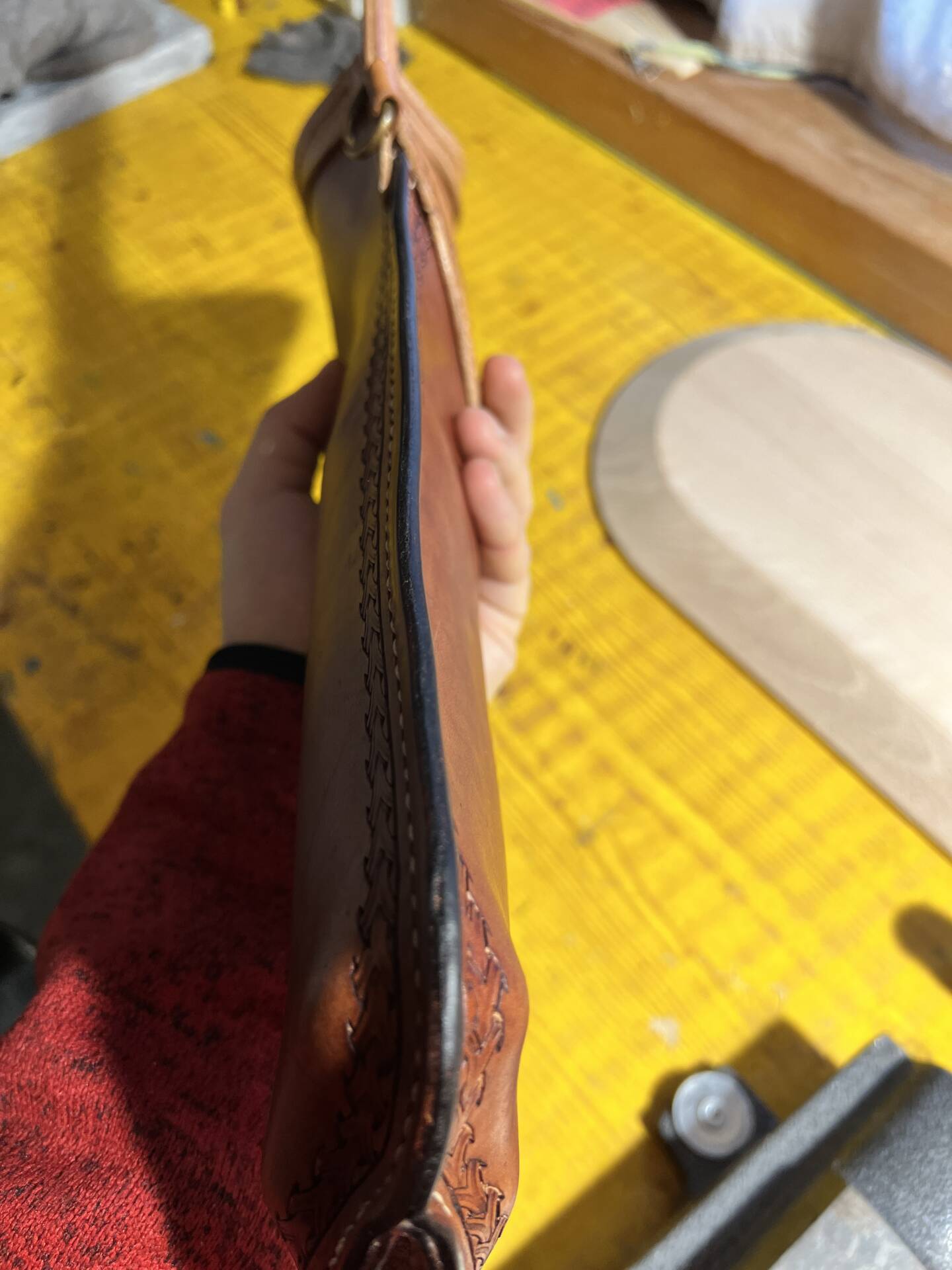Faretra da fianco in cuoio, concia al vegetale.