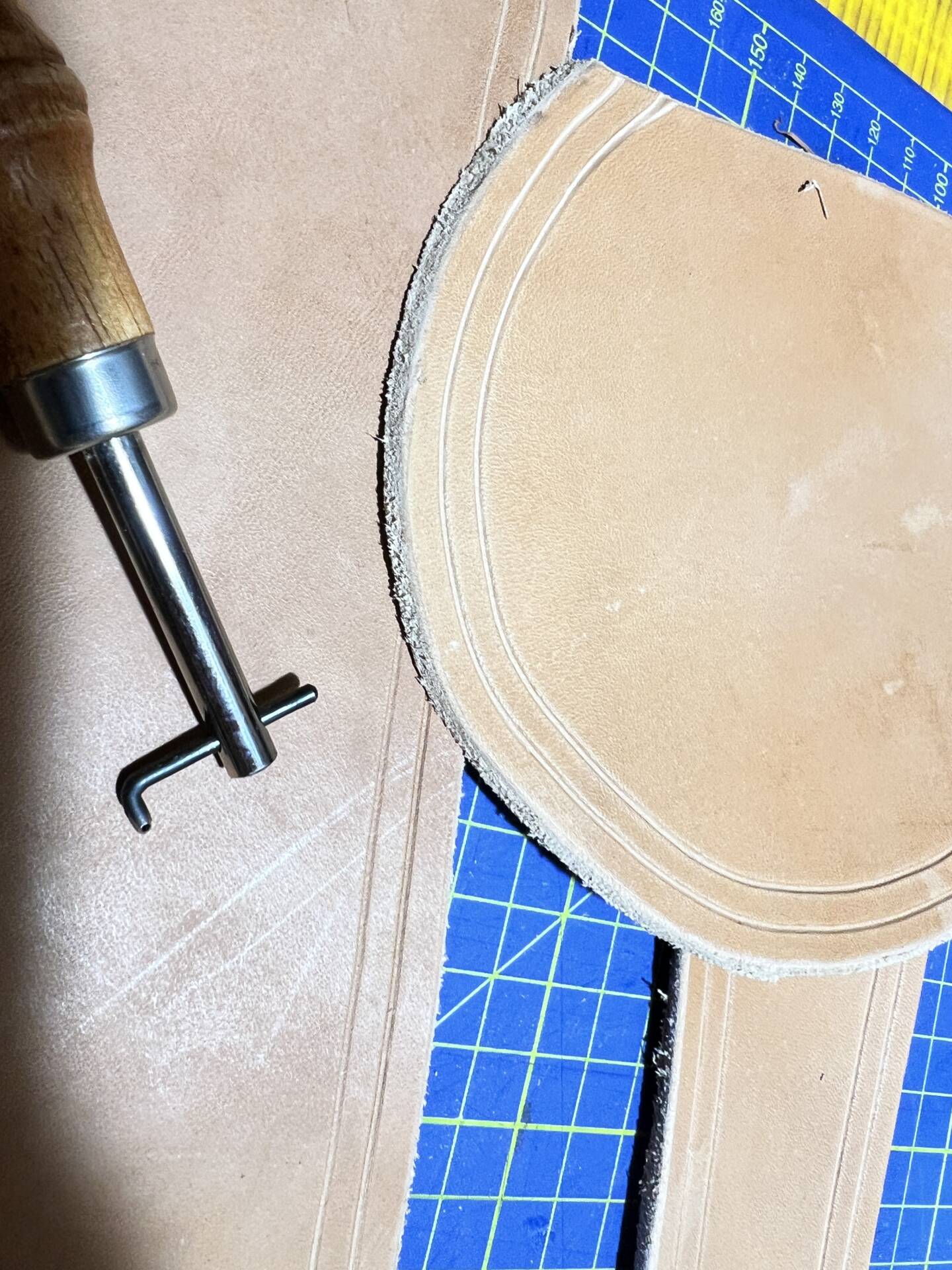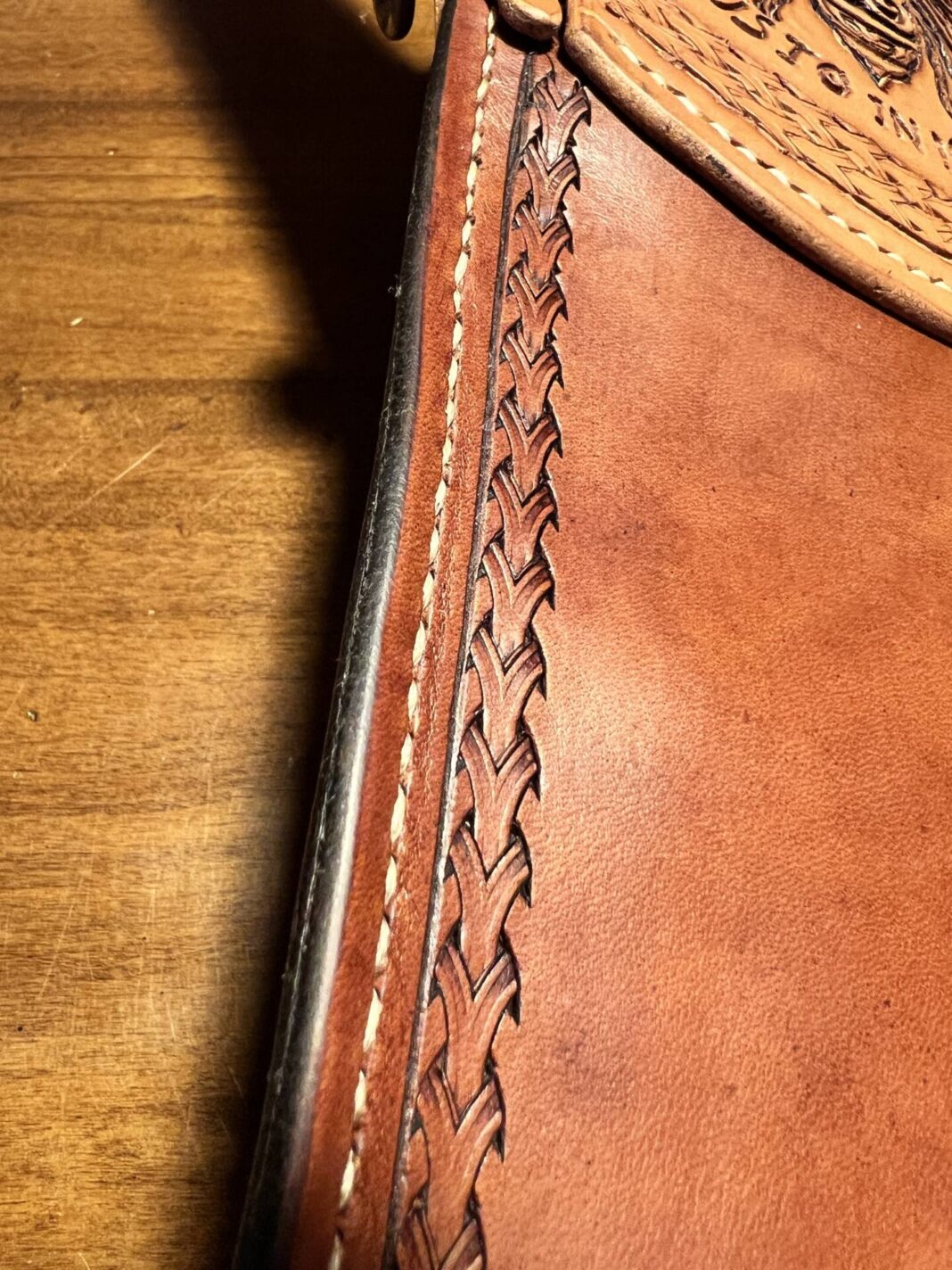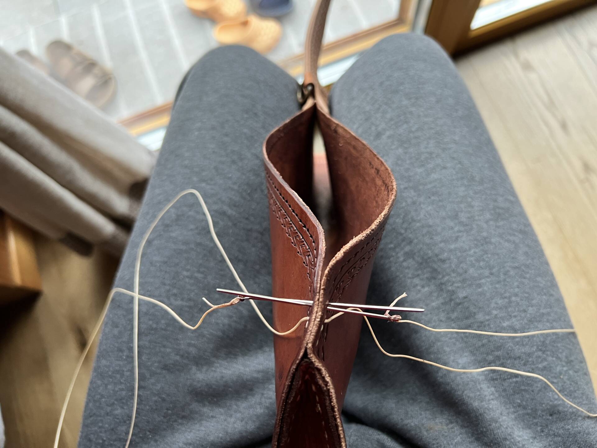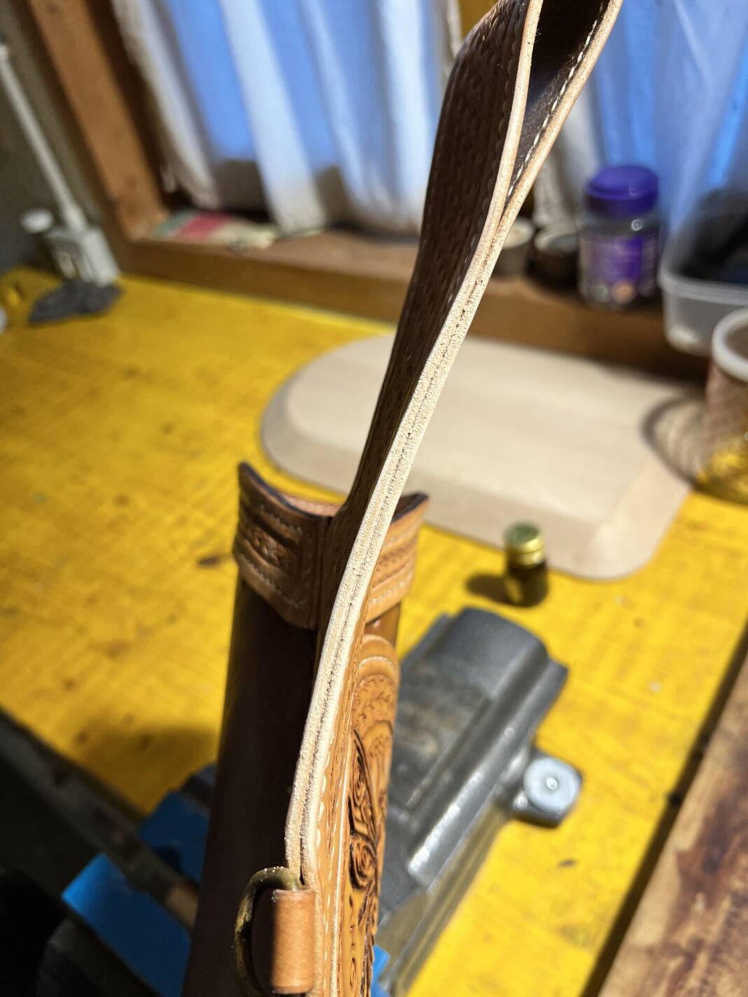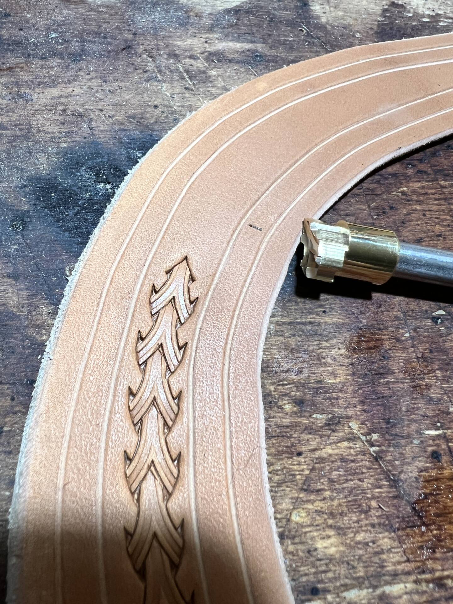 Faretra da fianco in cuoio, concia al vegetale.