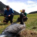 una bella avventura anche quest’anno,tiri molto lunghi sempre,sassi traditori pronti a spaccare frecce se uscivi dalla sagoma,tre bei giorni di sole poi il diluvio,la gara del venerdi è stata annullata a metà giro, i tre fatidici suoni di corno echeggiavano nella valle,i fulmini e le saette hanno colpito la seggiovia dello scanapà e poi la linea elettrica nel versante opposto nel campo del 3D,al momento eravamo un pochetto arrabbiati di interrompere ,ma mai decisione fu più saggia,il peggio doveva ancora venire tempesta vento forte e acqua in dosi massicce si sono liberate dal cielo,sempre farciti da qualche fulmine,al sabato le gare sono riprese x i più temerati ancora sotto la pioggia ma niente temporali ,così freddi e inzuppati di acqua, abbiamo concluso in allegria anche l’italiano 2012,tanti sono gli aneddoti che ci faranno ricordare questa competizione,sperando che l’alzaimer non galoppi hihhiihhihi,le risate con Giampi Osvi e Stefano in camera sono state tantissime a causa dei tumulti interni,ci siamo sostenuti a vicenda e incoraggiati x fare sempre il nostro meglio,ue speriamo di farne ancora e magari con la compagnia ancora più numerosa,