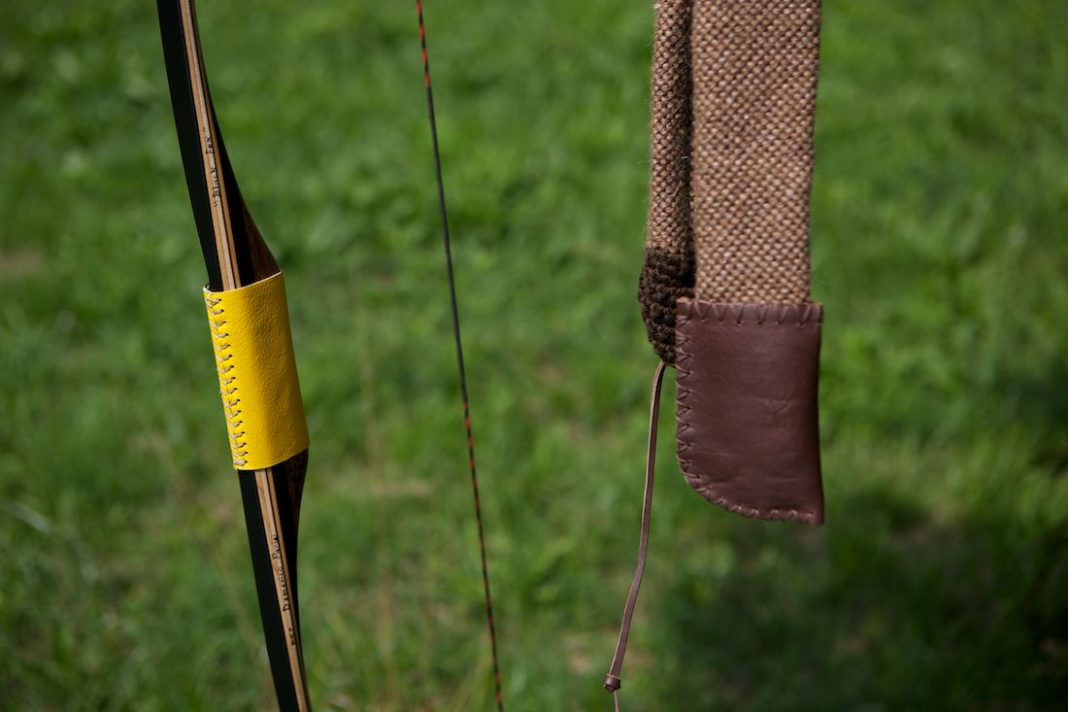 Porta archi in lana, con rifiniture in vera pelle, lavorato a telaio con materiale di prima scelta, confezionato appositamente per questo longbow da 70″.