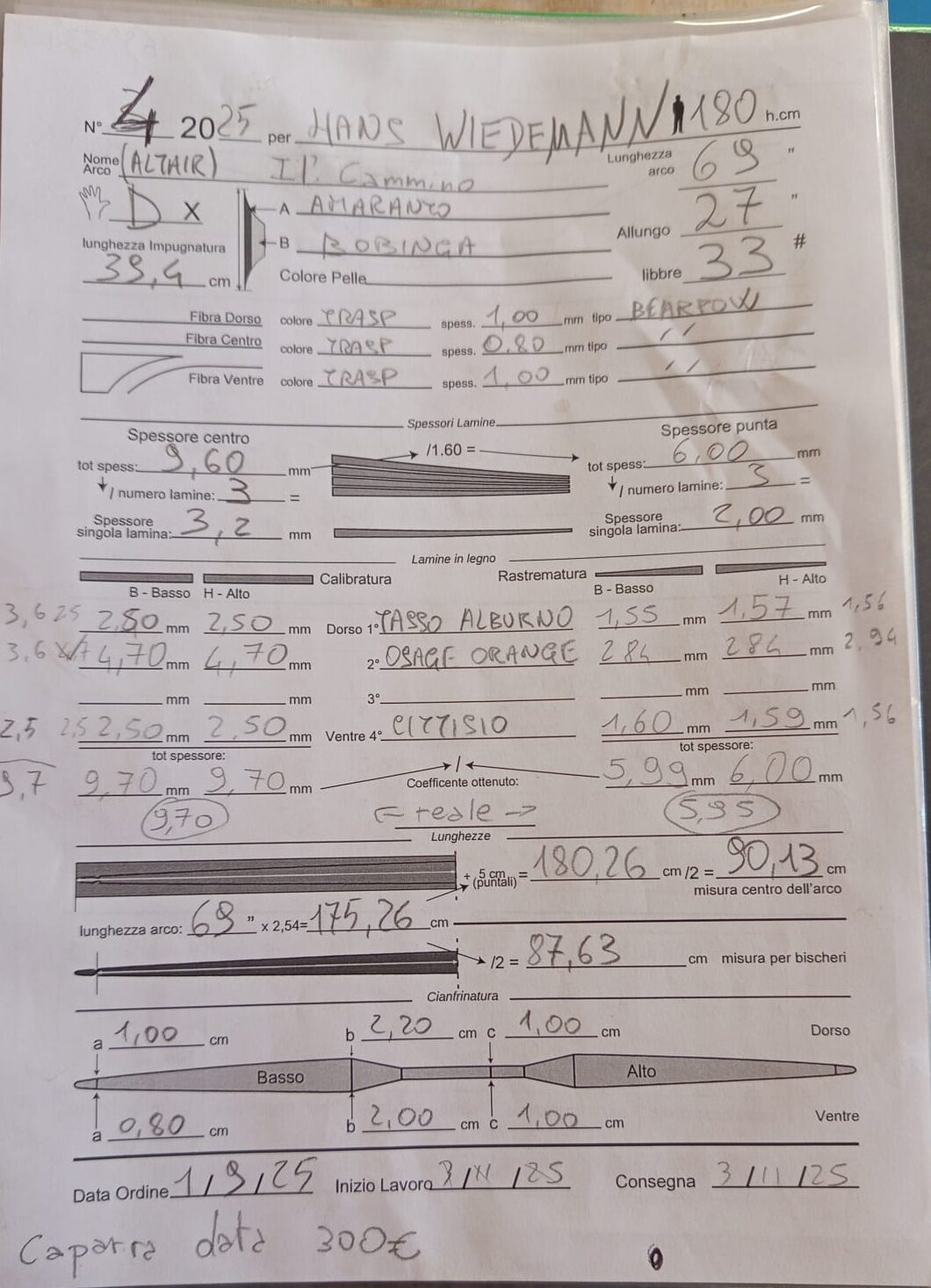 L’arco è stato fornito con garanzia per tutti i difetti di fabbricazione per 2 anni.