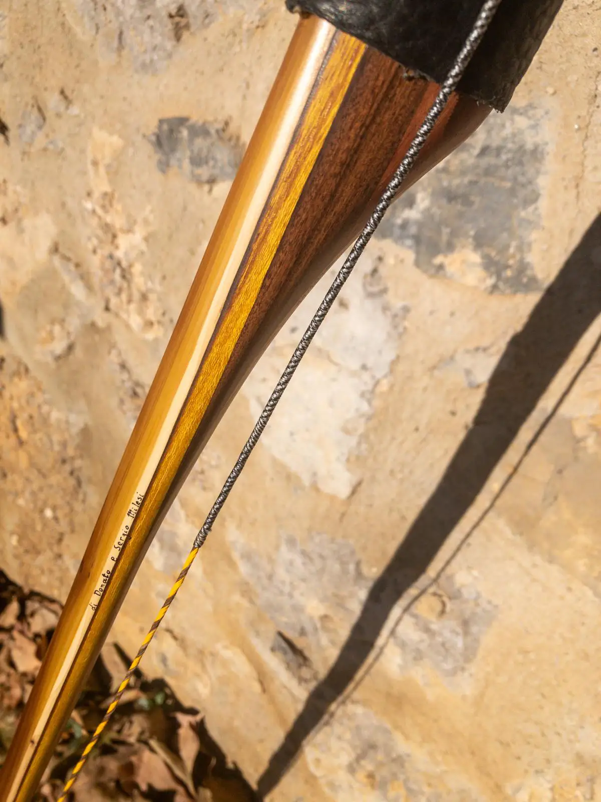Punto d’incocco: da 2 a 5 mm sopra lo zero rilevato con l’apposita squadretta poggiata sul cuoio della finetra d’arco, realizzato preferibilmente con lo stesso filato della corda.