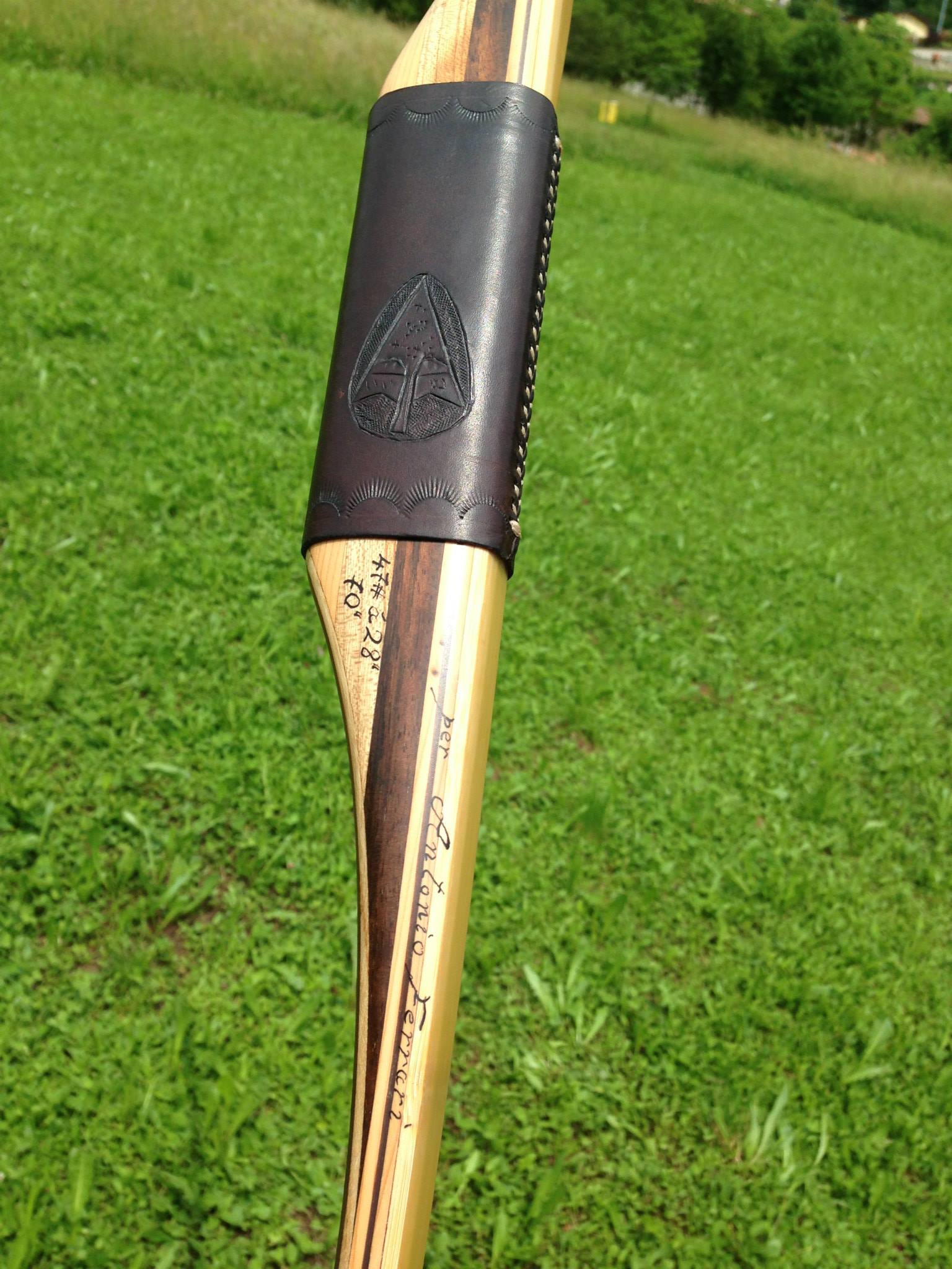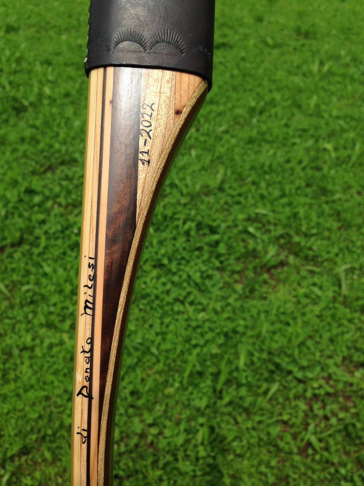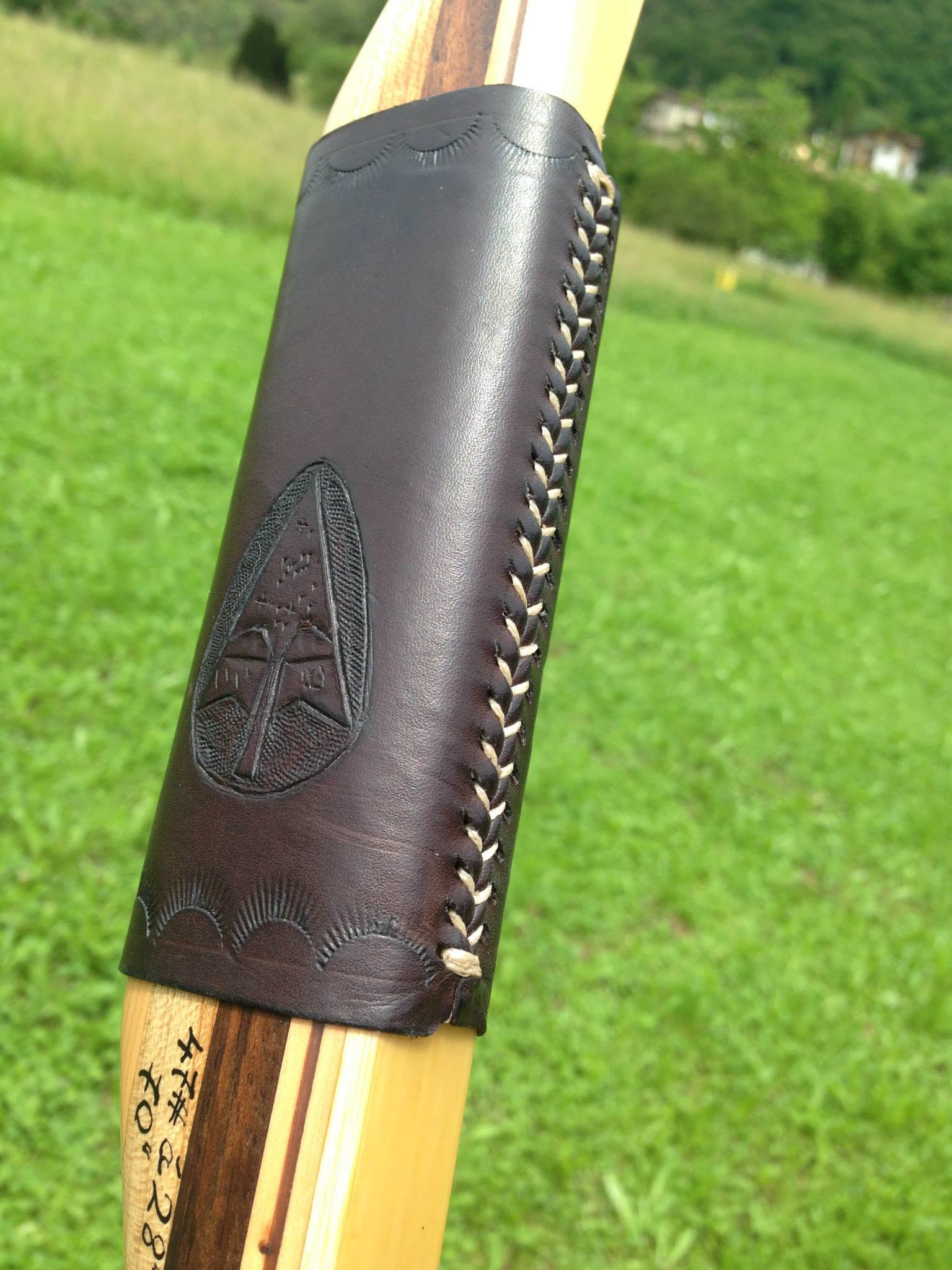 Carteggiato, cambiata leggermente forma dell’impugnatura per adattarla meglio alla mano dell’arciere.
