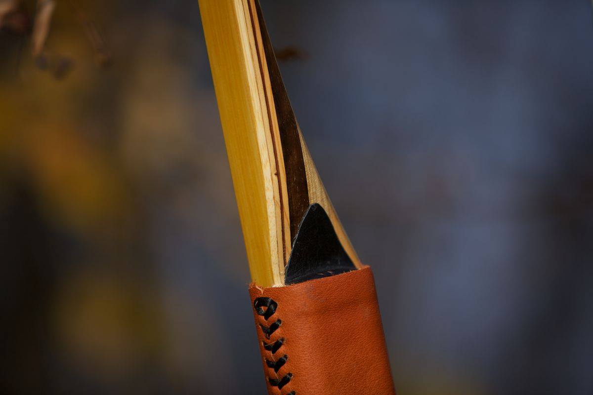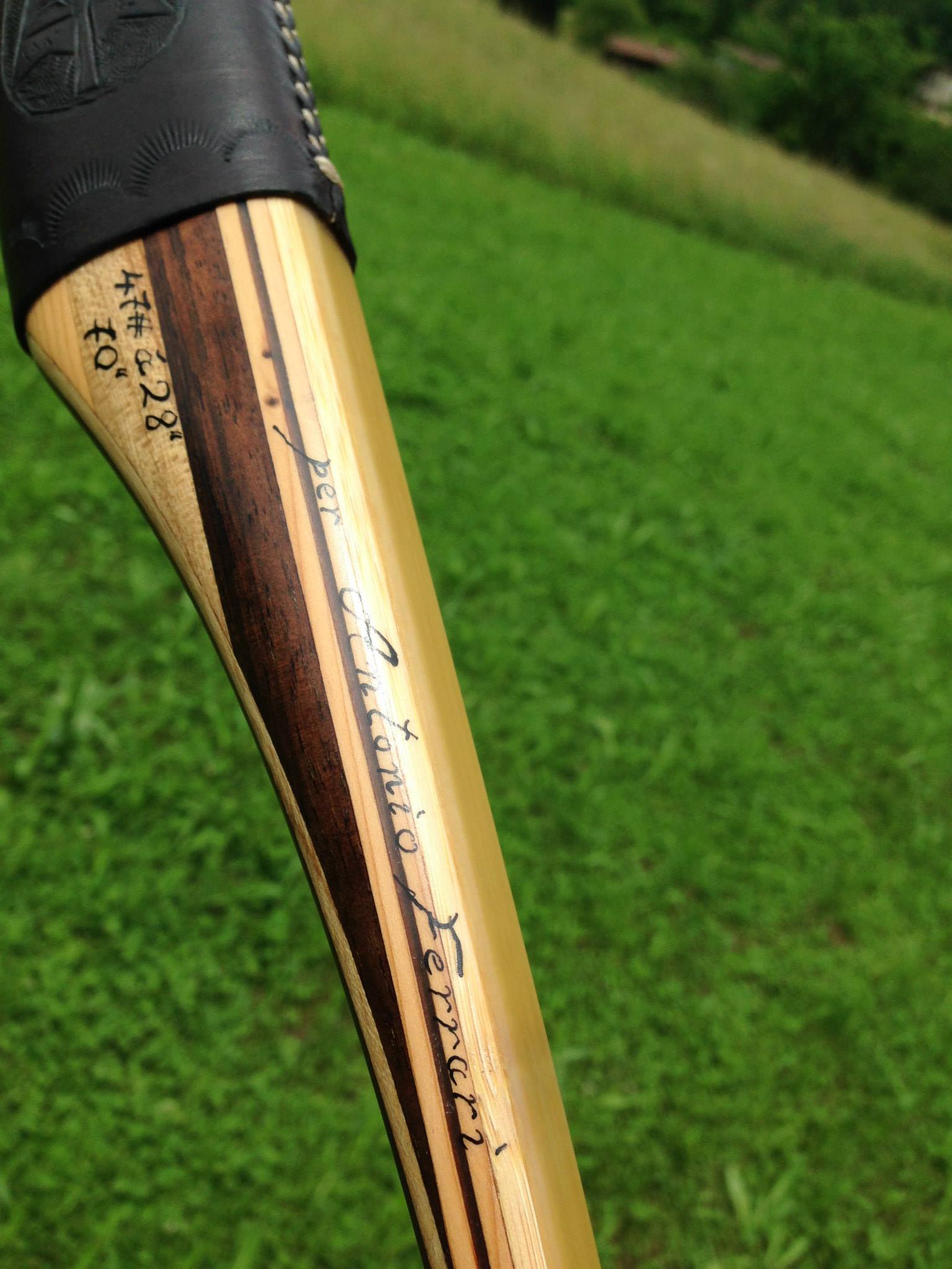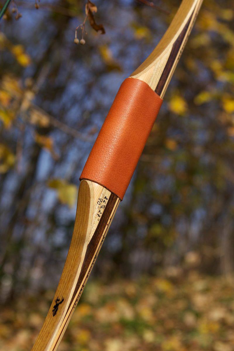 Carteggiato, cambiata leggermente forma dell’impugnatura per adattarla meglio alla mano dell’arciere.