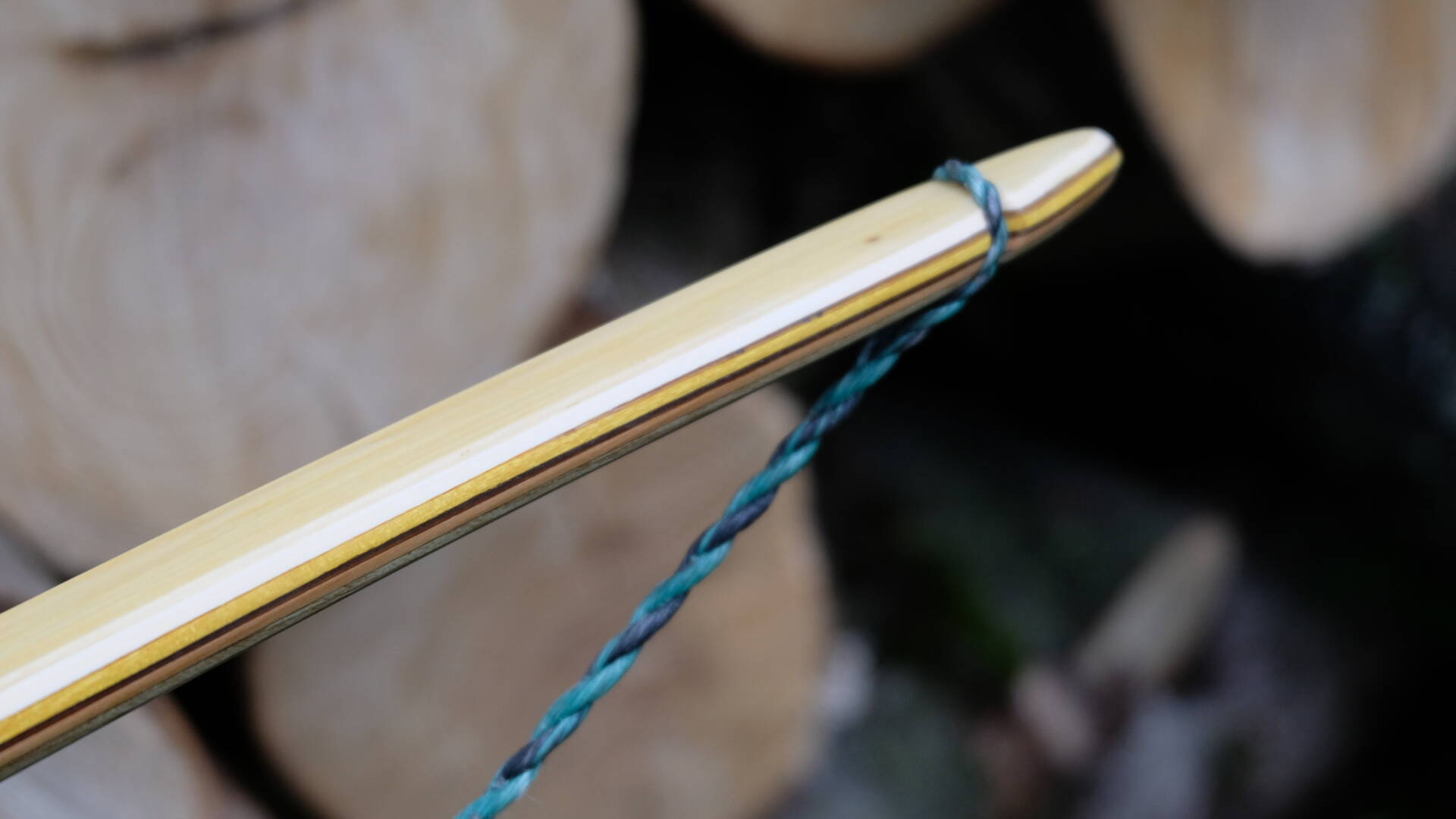 Punto d’incocco: da 2 a 5 mm sopra lo zero rilevato con l’apposita squadretta poggiata sul cuoio della finetra d’arco, realizzato preferibilmente con lo stesso filato della corda.